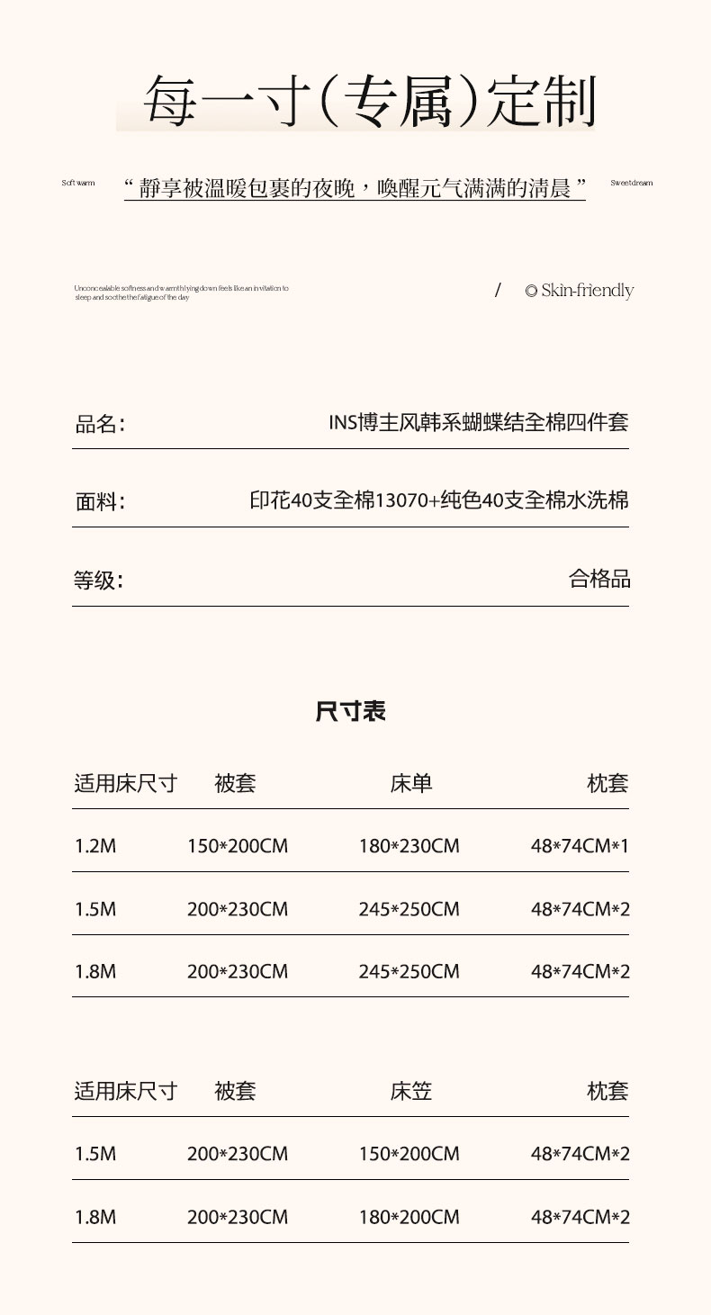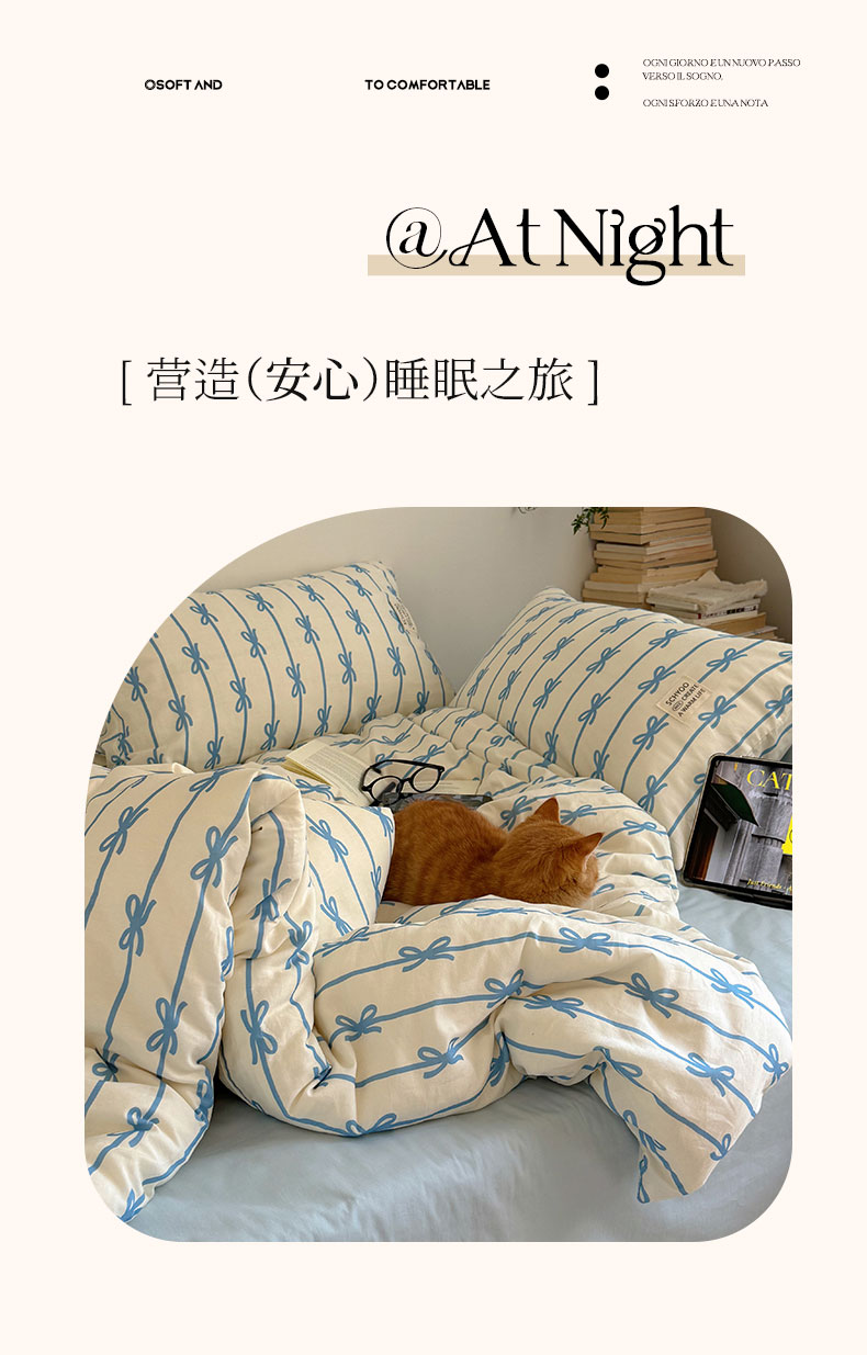 商品名称:六巷胡同 2026春夏新款INS博主风韩系蝴蝶结全棉四件套 丝带蝴蝶结-蓝