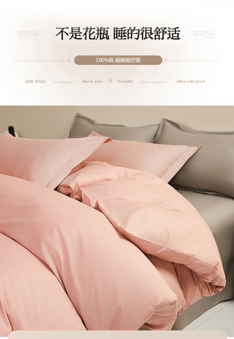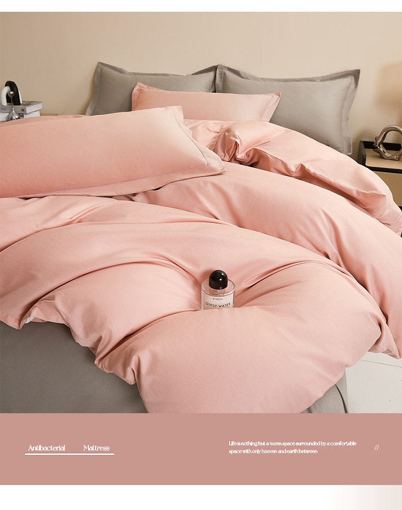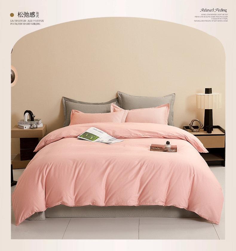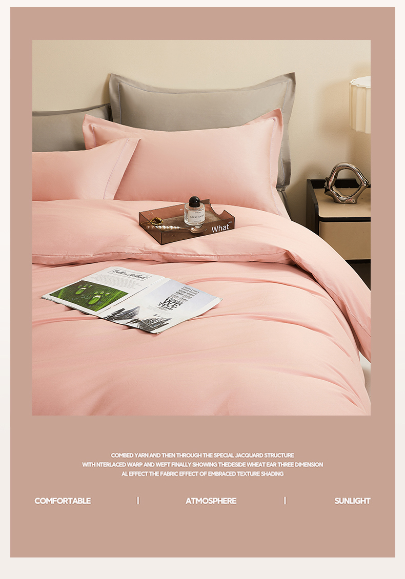 当前位置: 91家纺网 > 商品网购 > 床品套件 > 四件套 > 全棉普通四件套 > 名优家纺 2026新款60S13374高支密全棉印花纯色四件套 樱花粉+浅灰