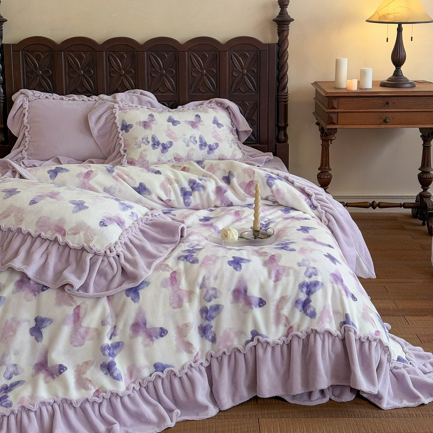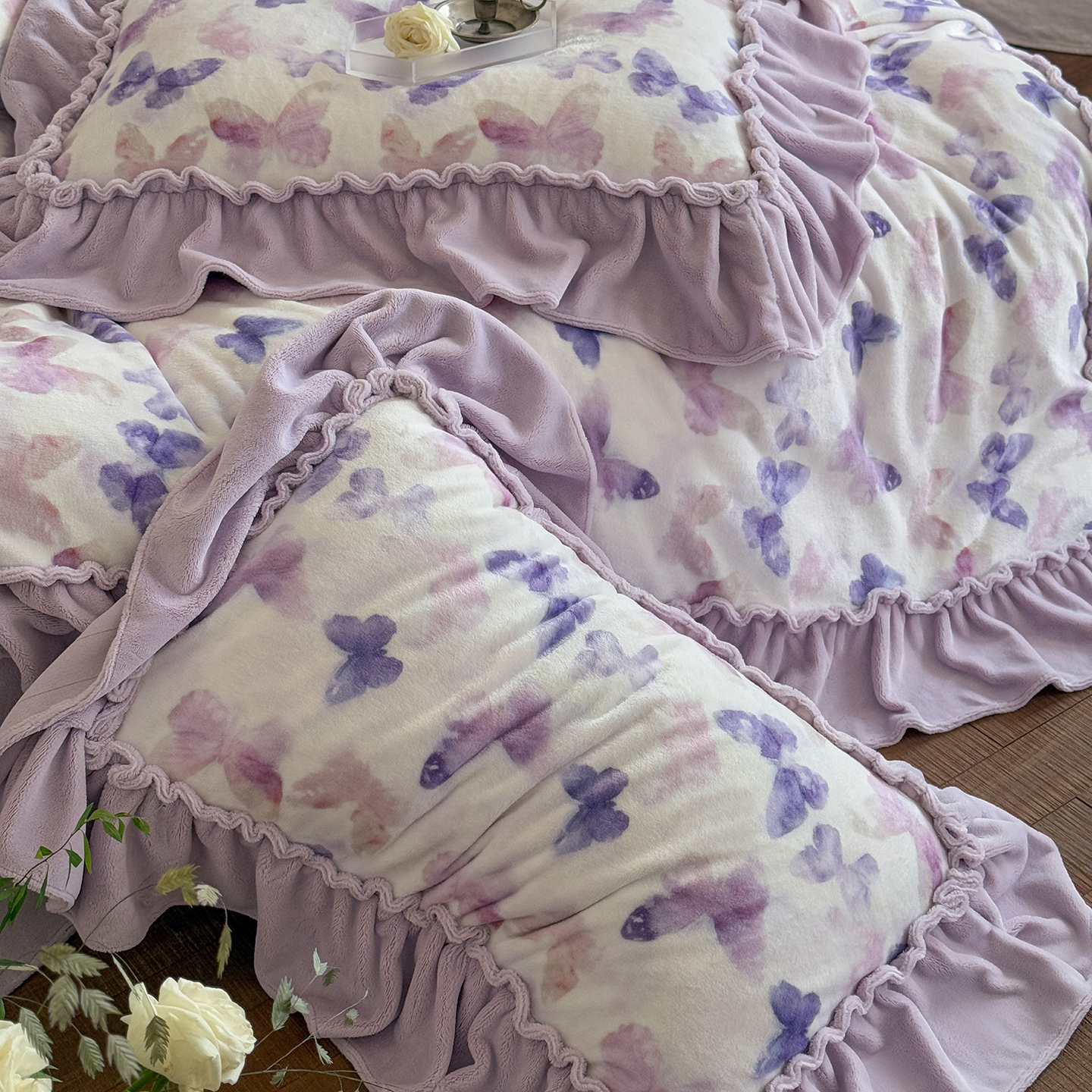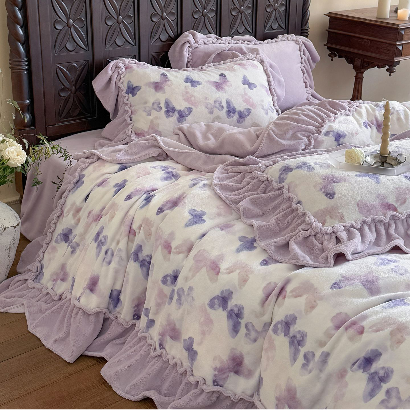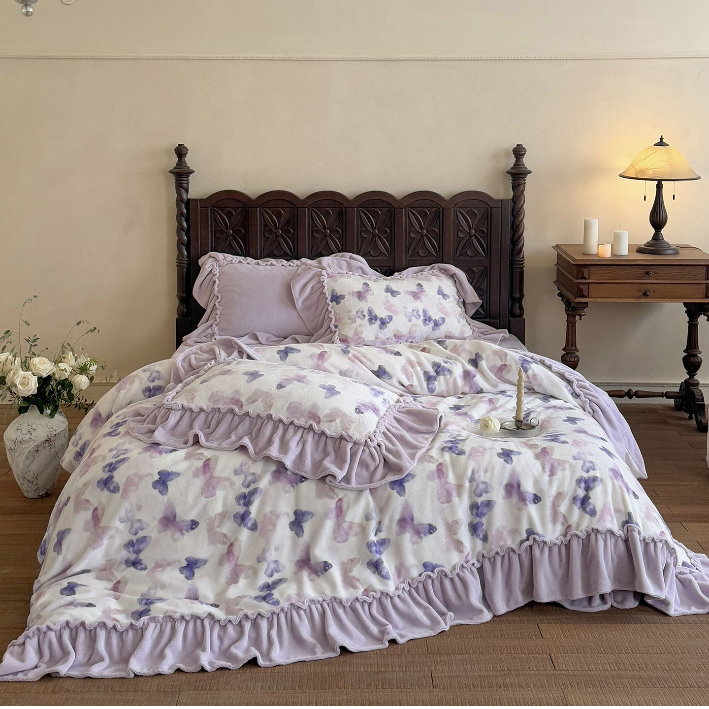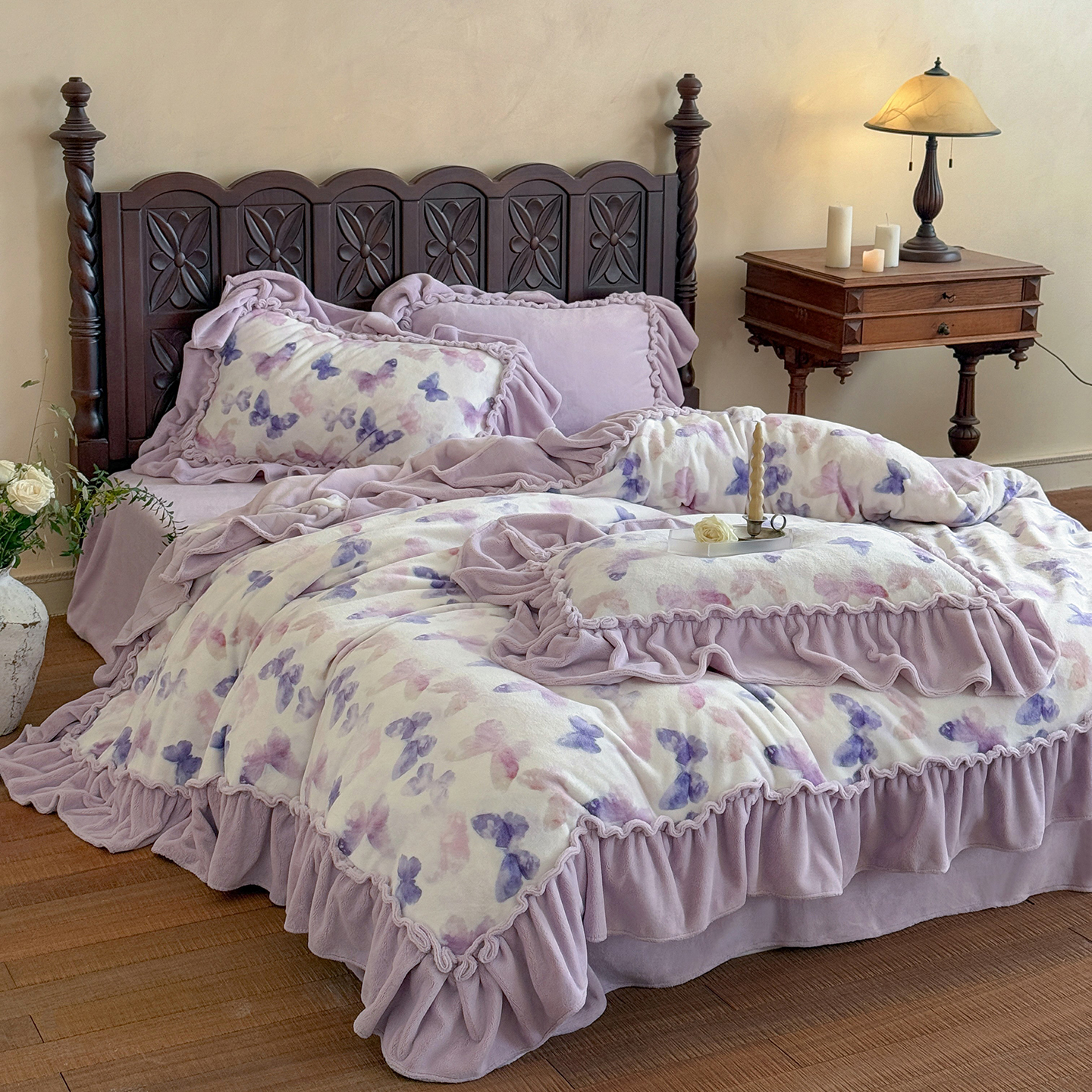 (总)多乐娜 2025新款轻法式精梳纯棉长绒棉工艺款四件套水洗棉韩版轻奢风-极光暮紫【控价:328/348元起】,极光暮紫