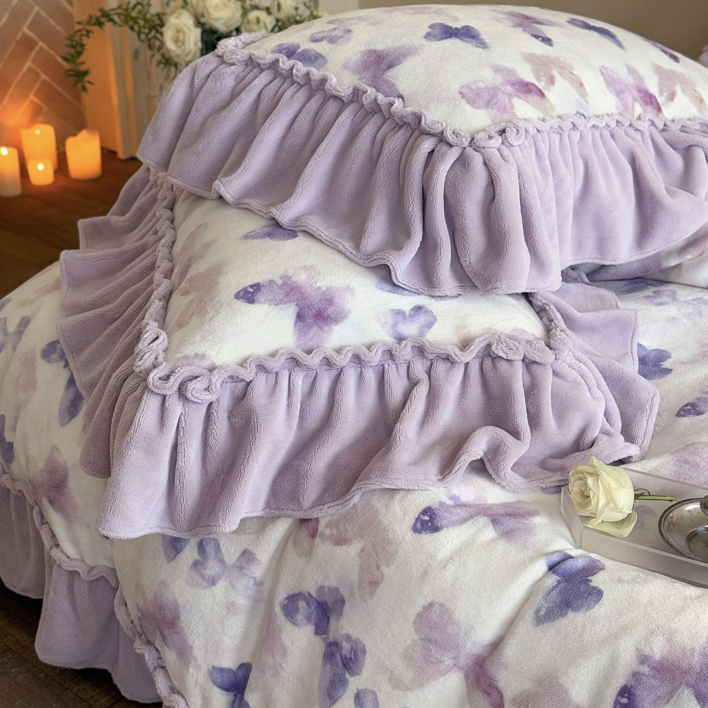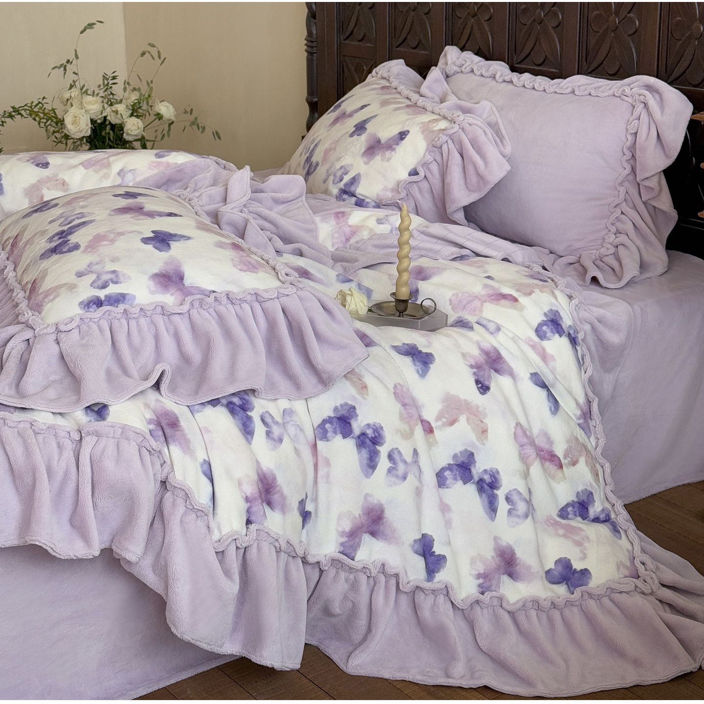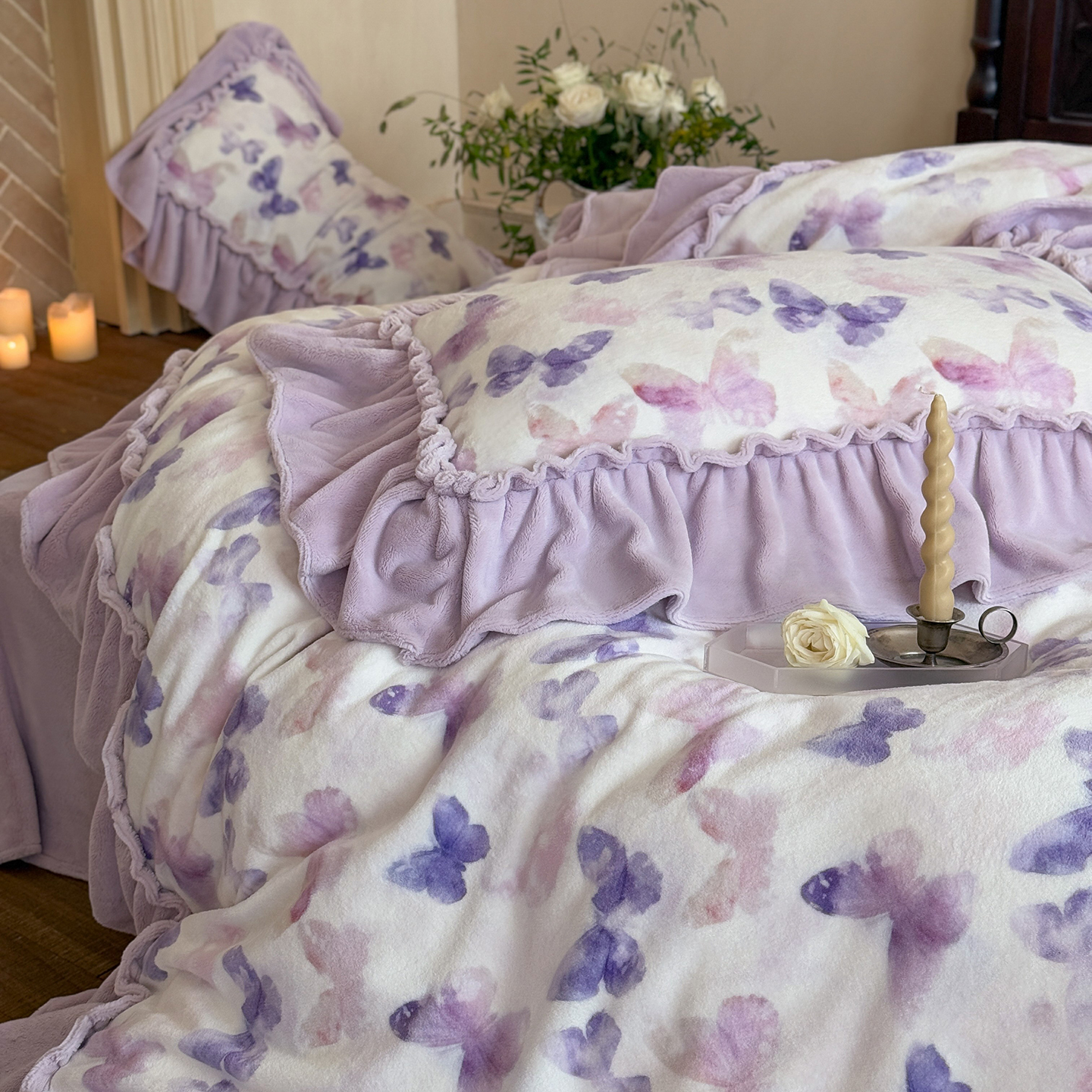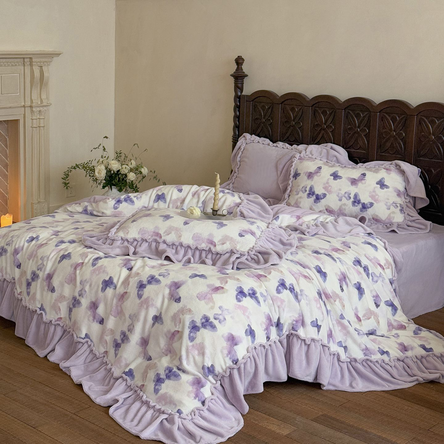 (总)多乐娜 2025新款轻法式精梳纯棉长绒棉工艺款四件套水洗棉韩版轻奢风-极光暮紫【控价:328/348元起】,极光暮紫