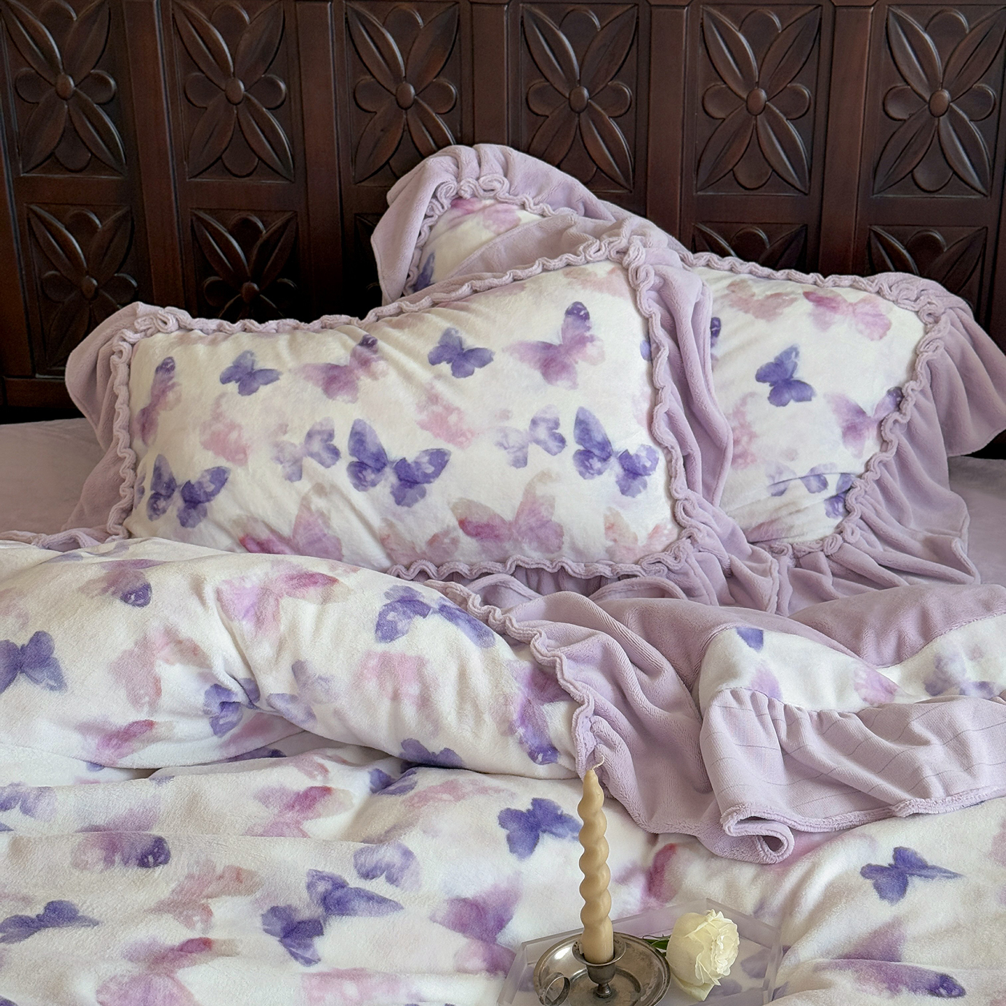 (总)多乐娜 2025新款法式100s贡缎 长绒棉纯棉工艺款四件套 全棉花边款,觅蝶