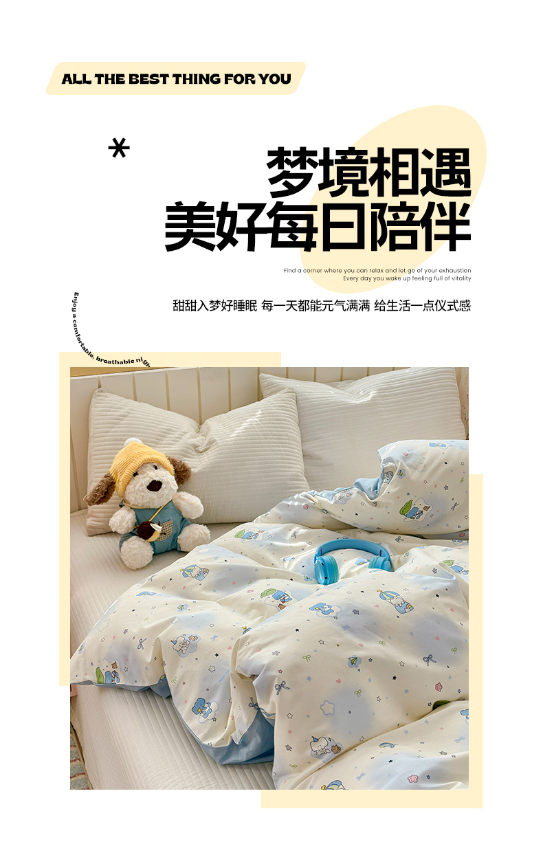 (总)清雅福 2026春夏新款INS小清新40支全棉13372单被套第二批,可爱萌星,可爱喵喵,蓝色小象,觅秋,沫汐,跷跷马,甜蜜花园,星星布偶,星星企鹅,幸福小熊,幸运星,月亮狗
