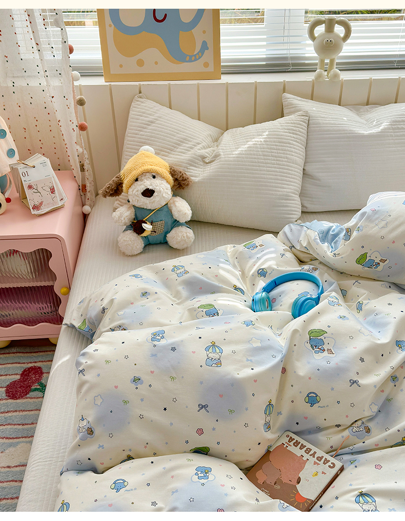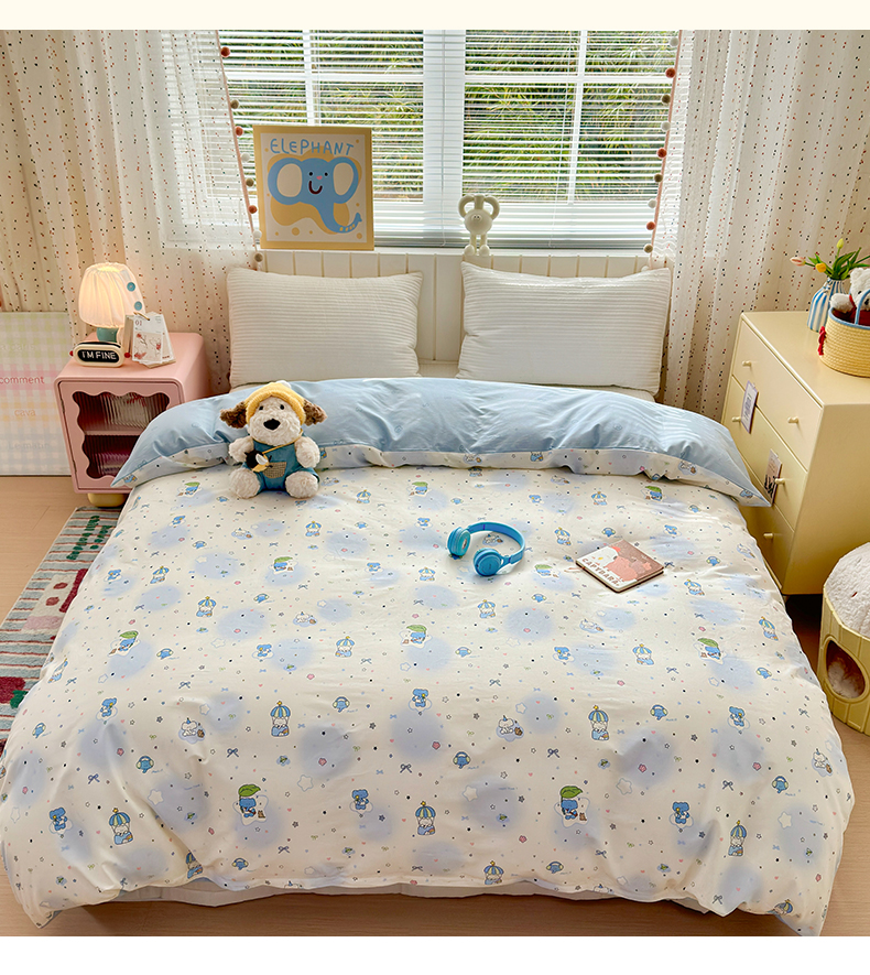 当前位置: 91家纺网 > 商品网购 > 床上用品 > 被套 > 清雅福 2026春夏新款INS小清新40支全棉13372单被套第二批 蓝色小象