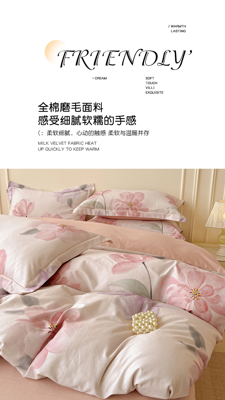 朵希曼 2026新款全棉云感生态磨毛数码印花系列四件套 茶言妙语