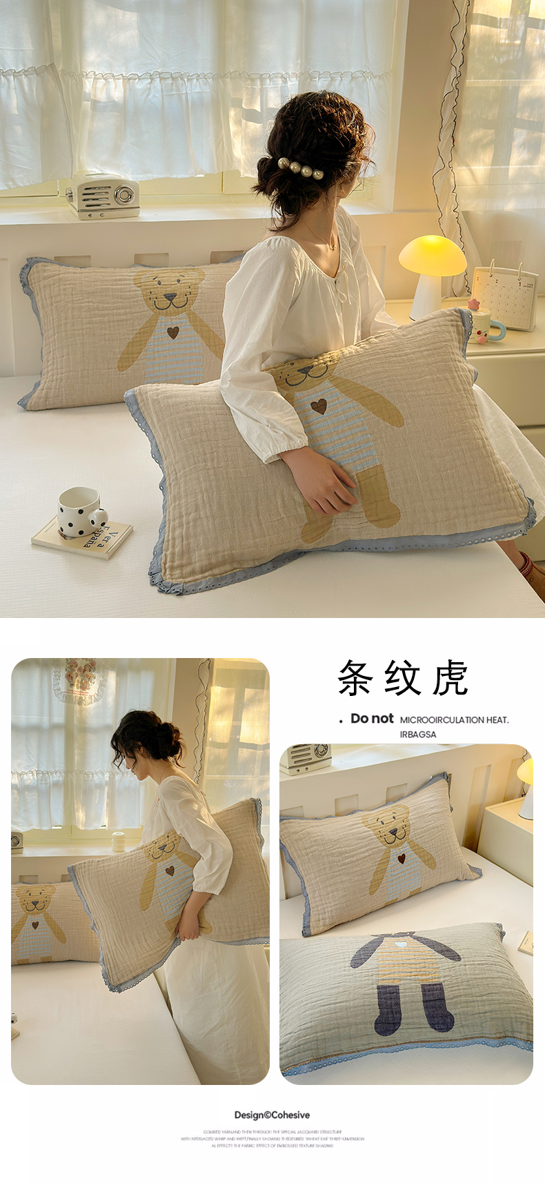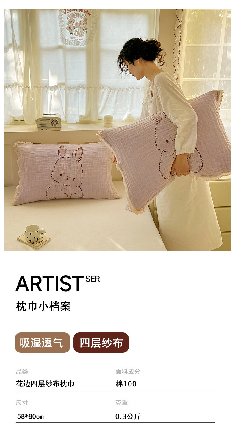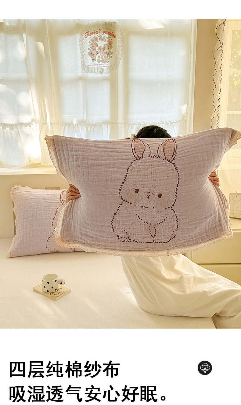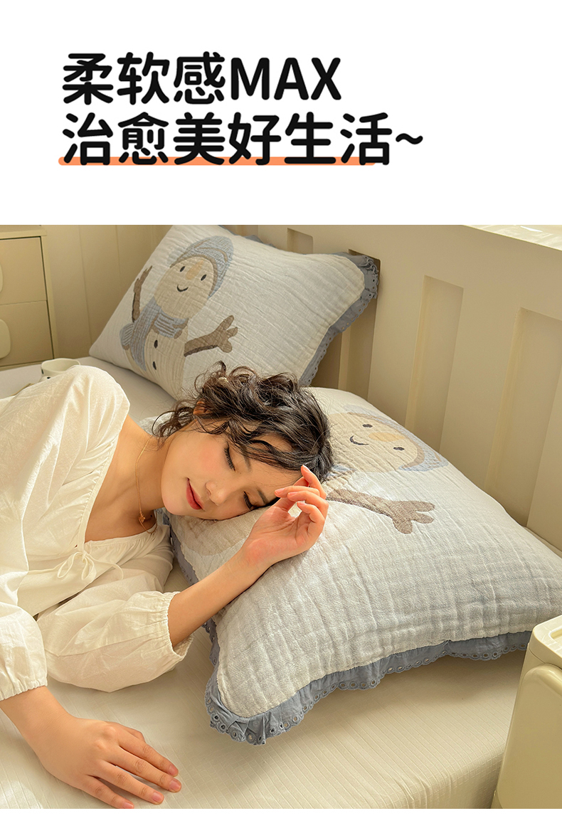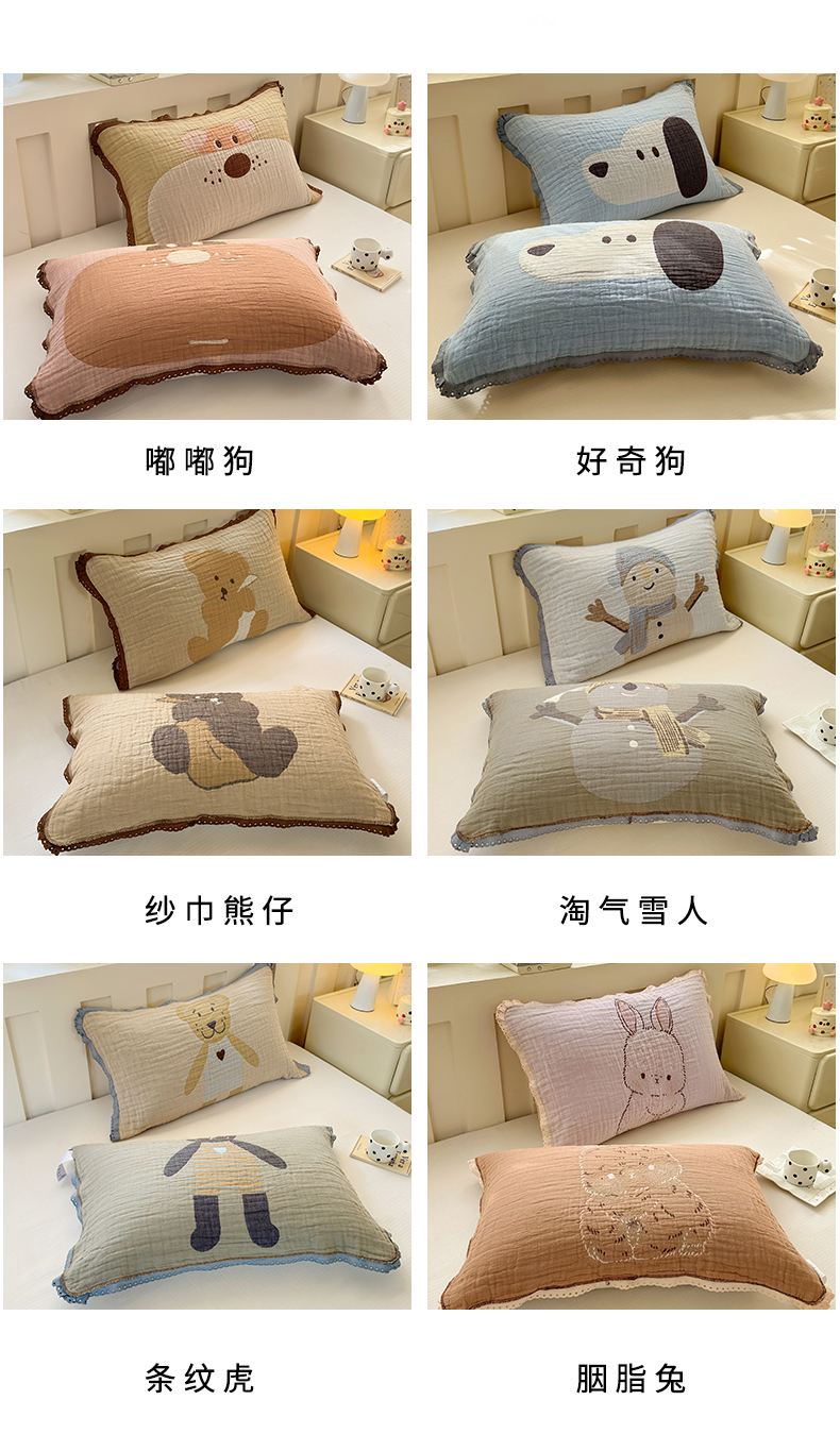 当前位置: 91家纺网 > 商品网购 > 床上用品 > 枕巾垫巾 > 朴尔家纺-毛巾被 2026新款皱皱纱卡通大版花边全棉四层纱布枕巾 纱巾熊仔