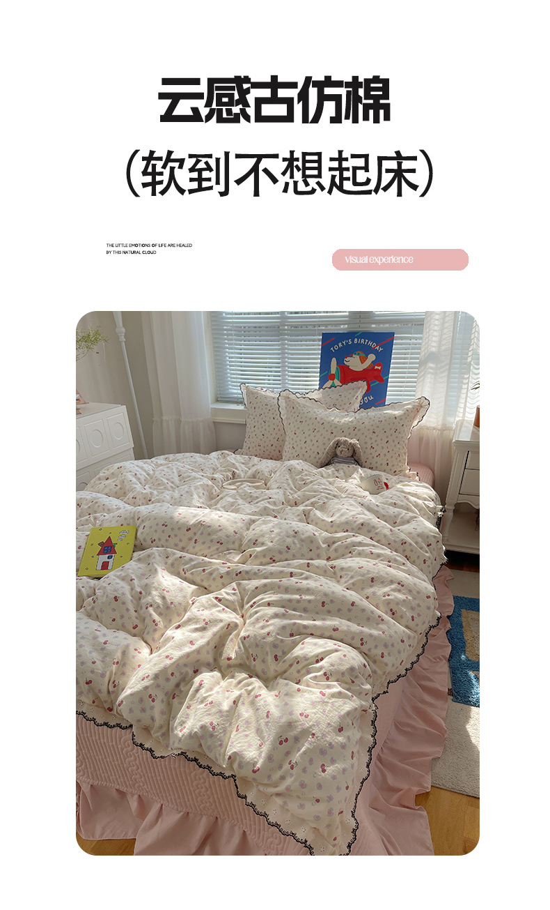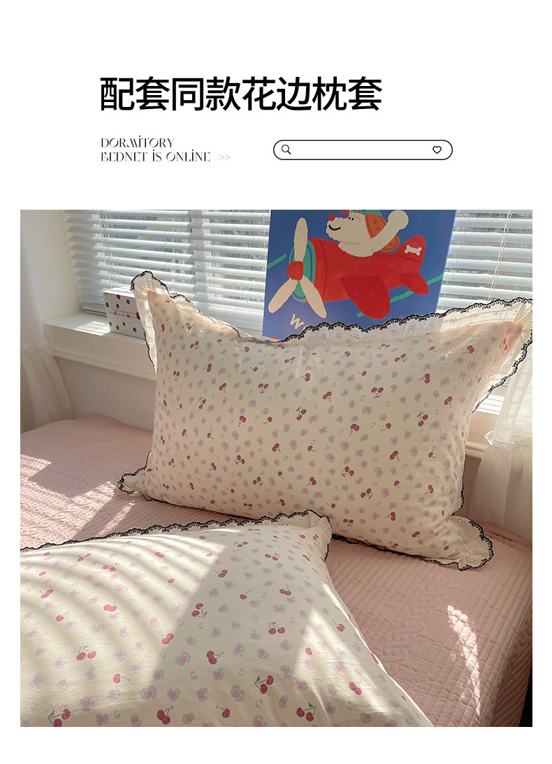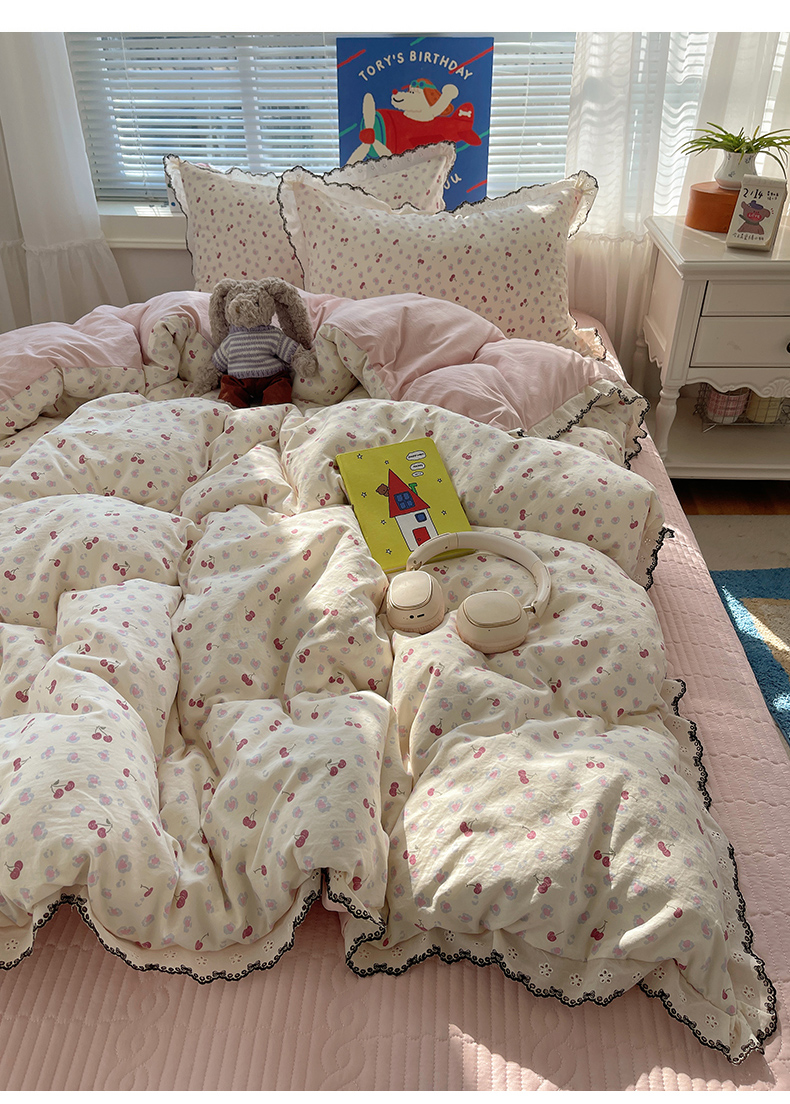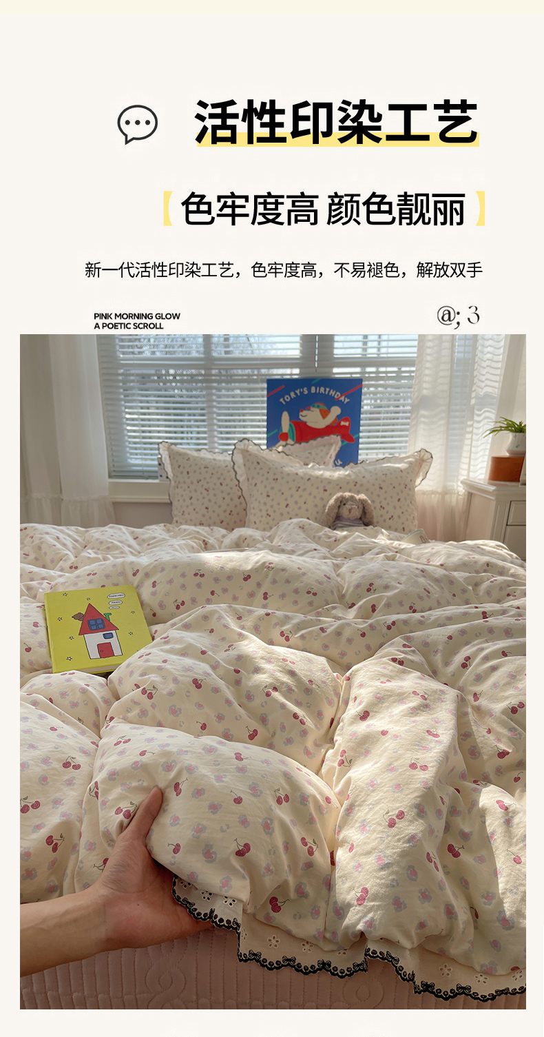 当前位置: 91家纺网 > 商品网购 > 床品套件 > 四件套 > 其它四件套 > 花漾家居 2026小红书推荐款小清新刺绣花边款床单床盖款四件套新款 甜心樱桃