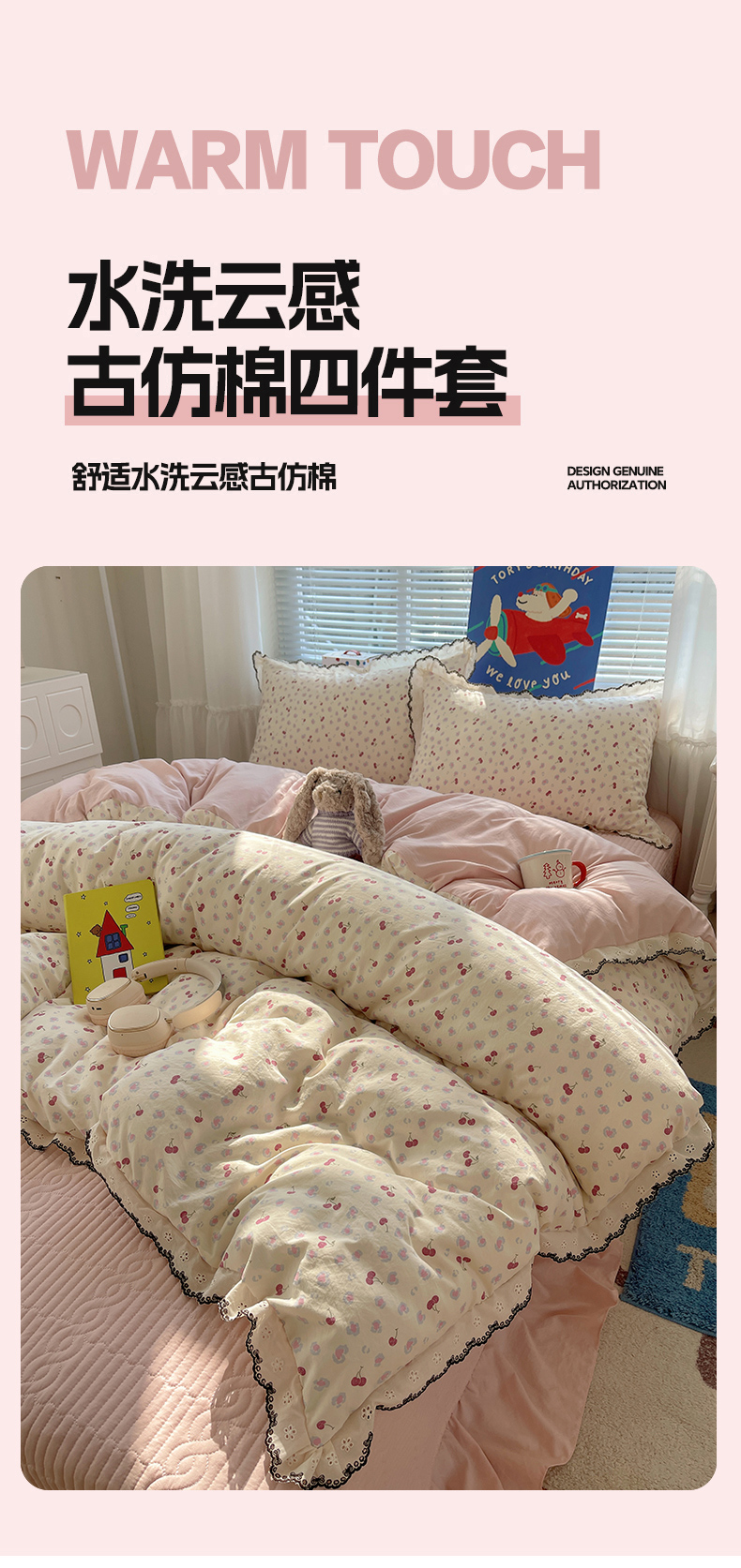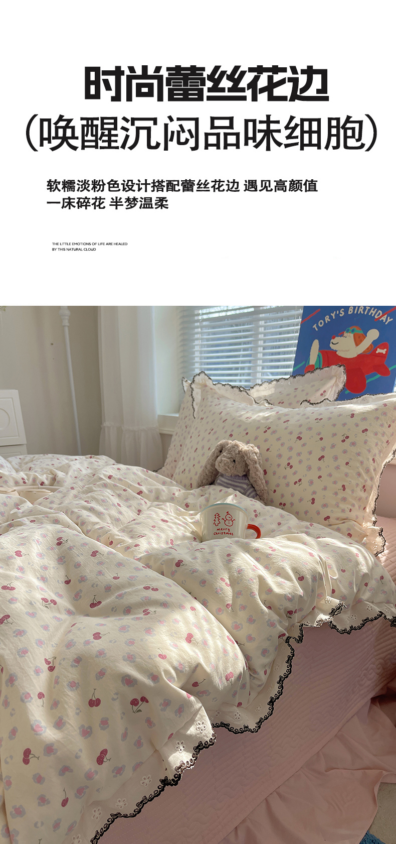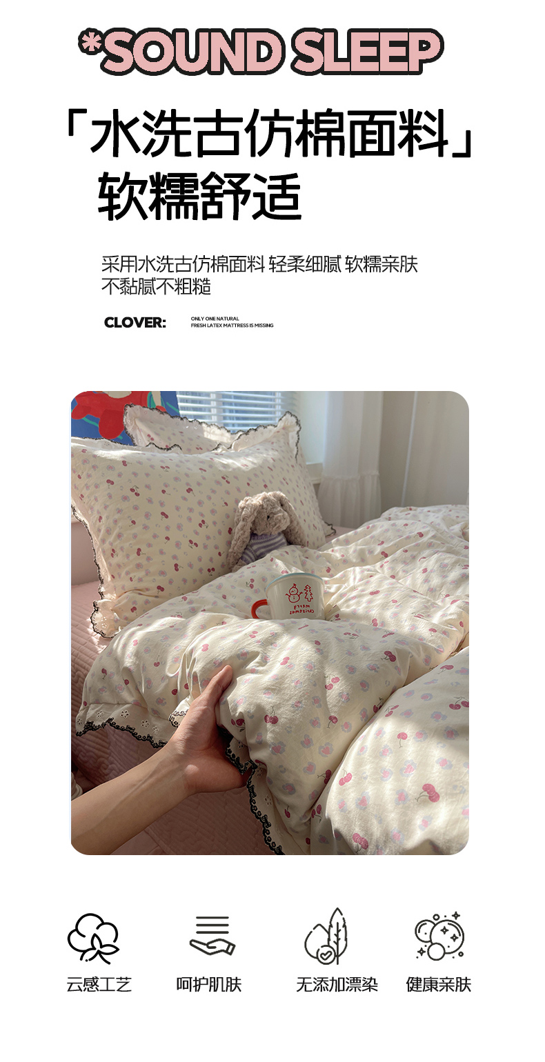 当前位置: 91家纺网 > 商品网购 > 床品套件 > 四件套 > 其它四件套 > 花漾家居 2026小红书推荐款小清新刺绣花边款床单床盖款四件套新款 甜心樱桃