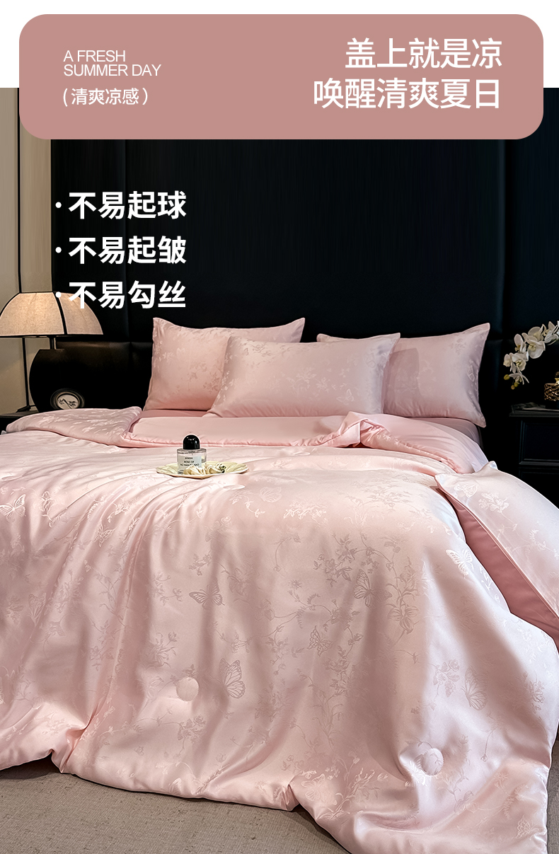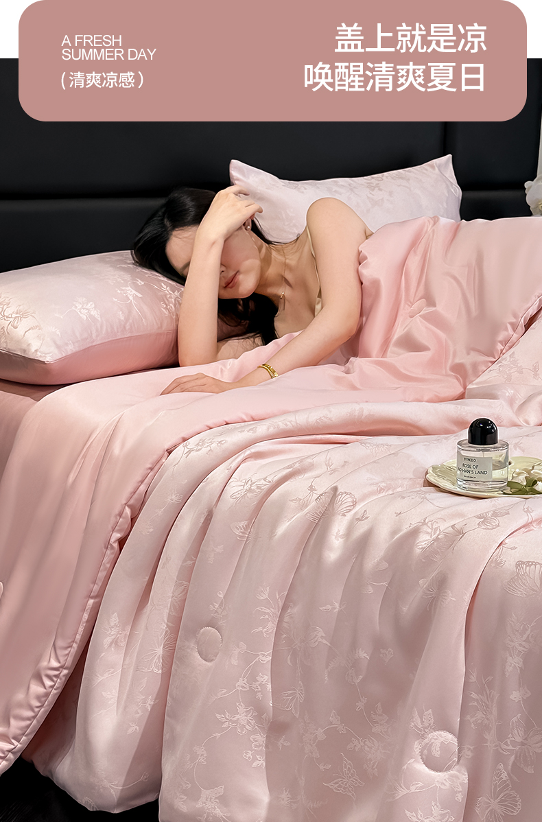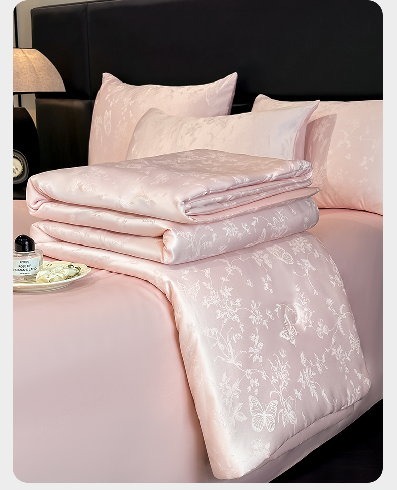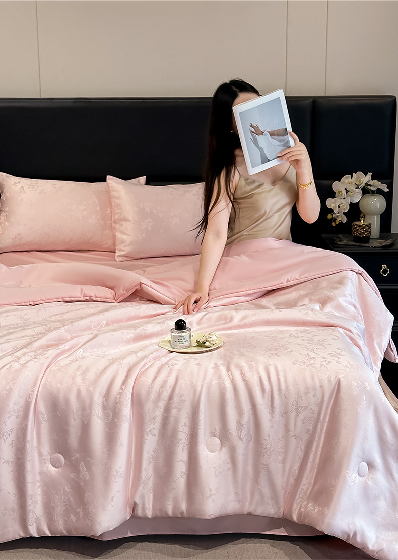 当前位置: 91家纺网 > 商品网购 > 床品套件 > 四件套 > 夏被四件套 > 顺兴家居 2026新款提花水洗真丝夏被空调被四件套 夏被雾中花影-粉玉