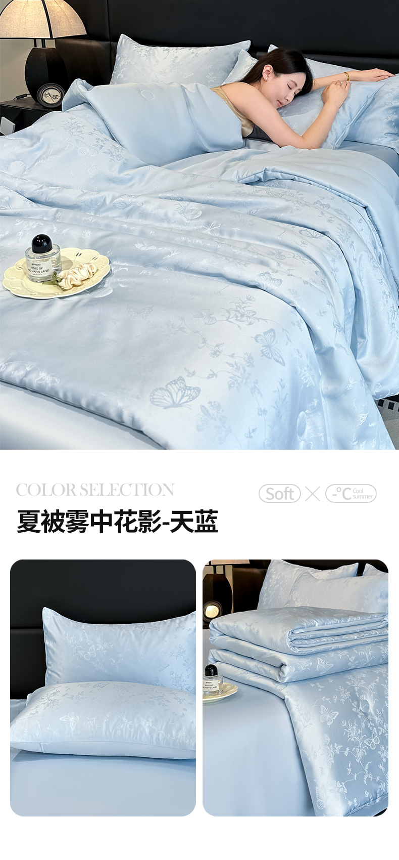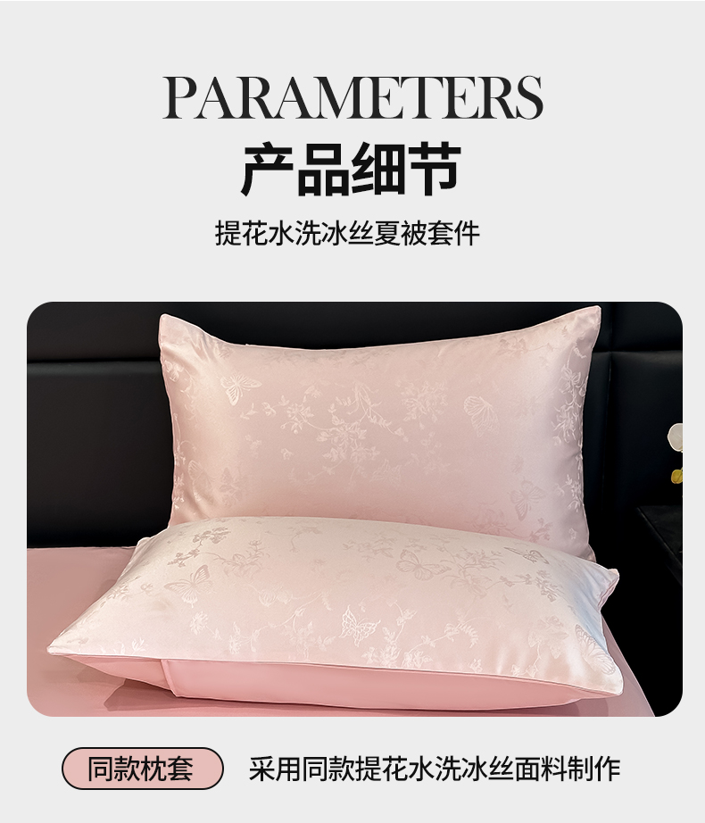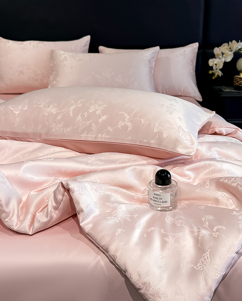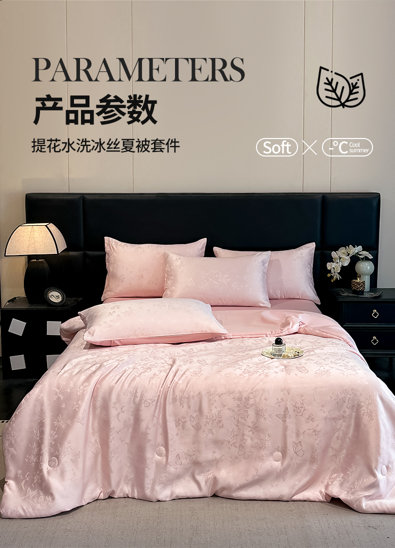 当前位置: 91家纺网 > 商品网购 > 床品套件 > 四件套 > 夏被四件套 > 顺兴家居 2026新款提花水洗真丝夏被空调被四件套 夏被雾中花影-粉玉