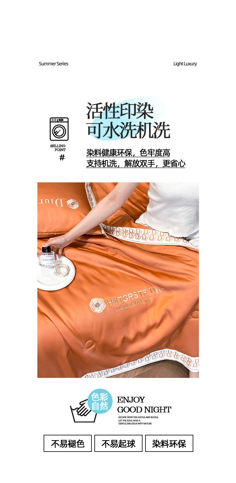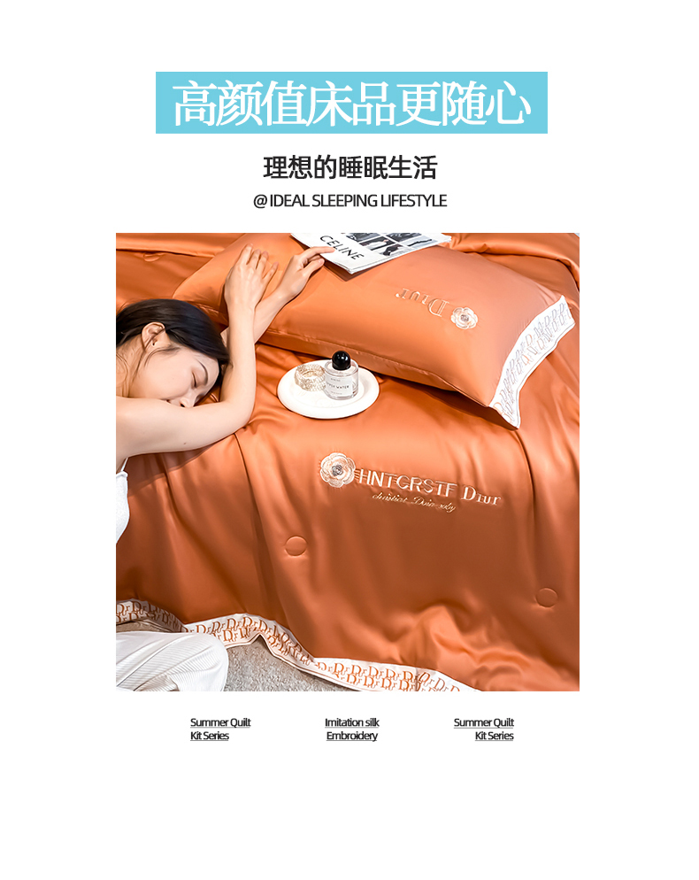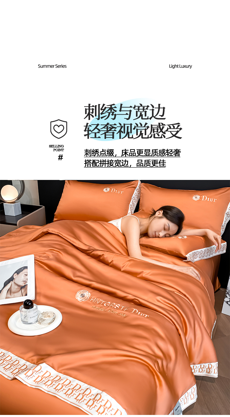 • 91家纺网 家纺一手货源 找家纺 (总)露梦 2026新款大牌轻奢款水洗真丝刺绣数码宽边夏被四件套-安迪,安迪-爱玛橙,安迪-高级灰,安迪-海盐绿,安迪-摩卡蓝,安迪-嫩奶绿,安迪-胭脂粉