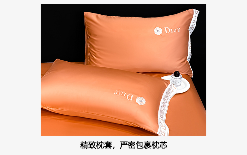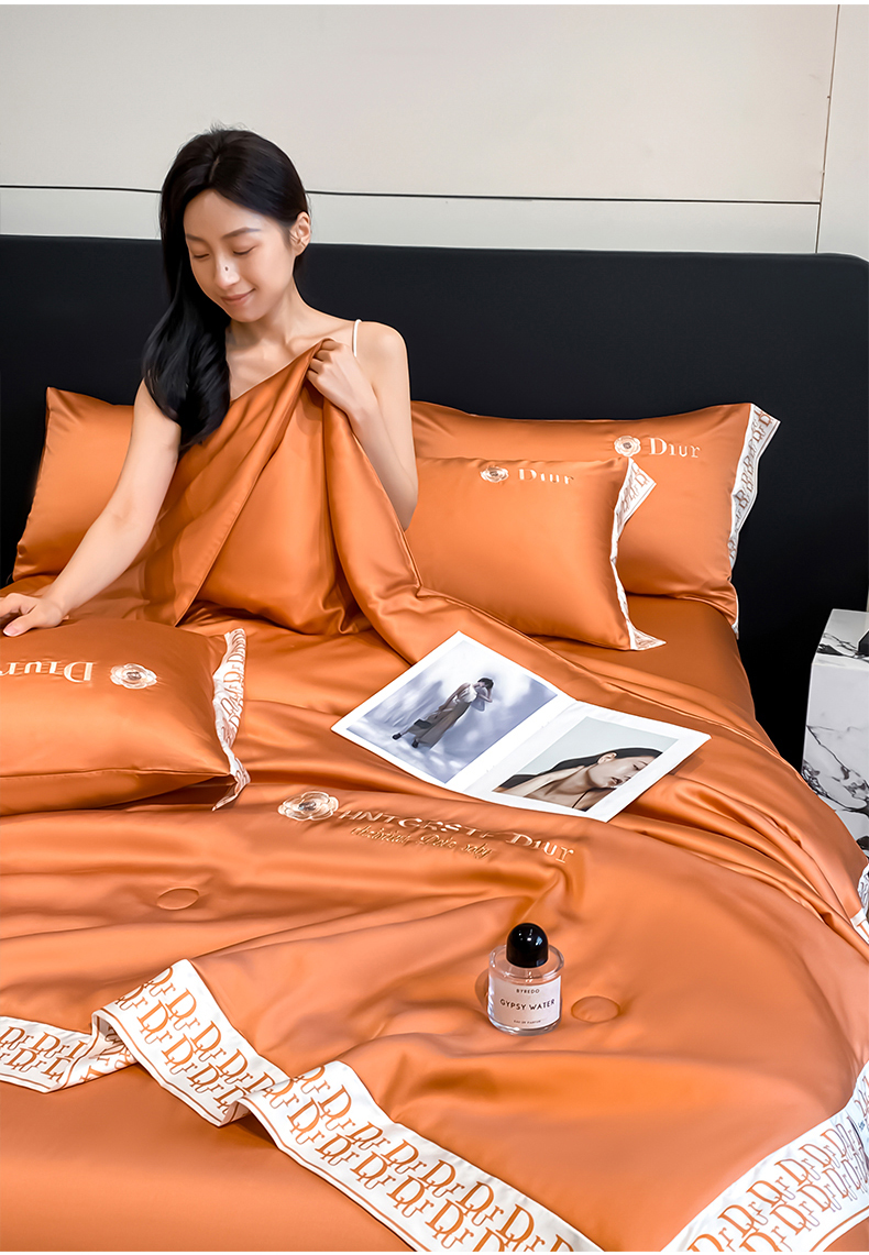 露梦家纺 2026新款安迪水洗真丝夏被四件套 安迪-玛仕橘