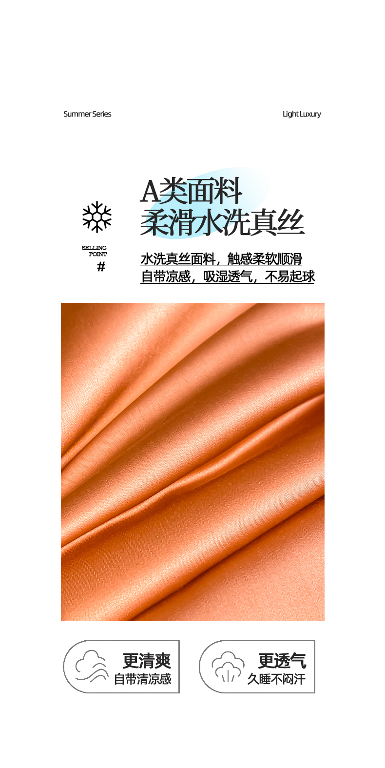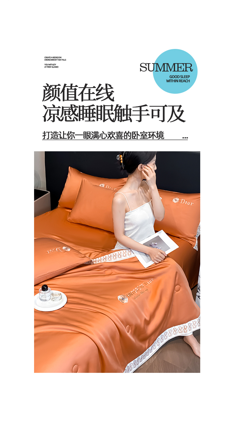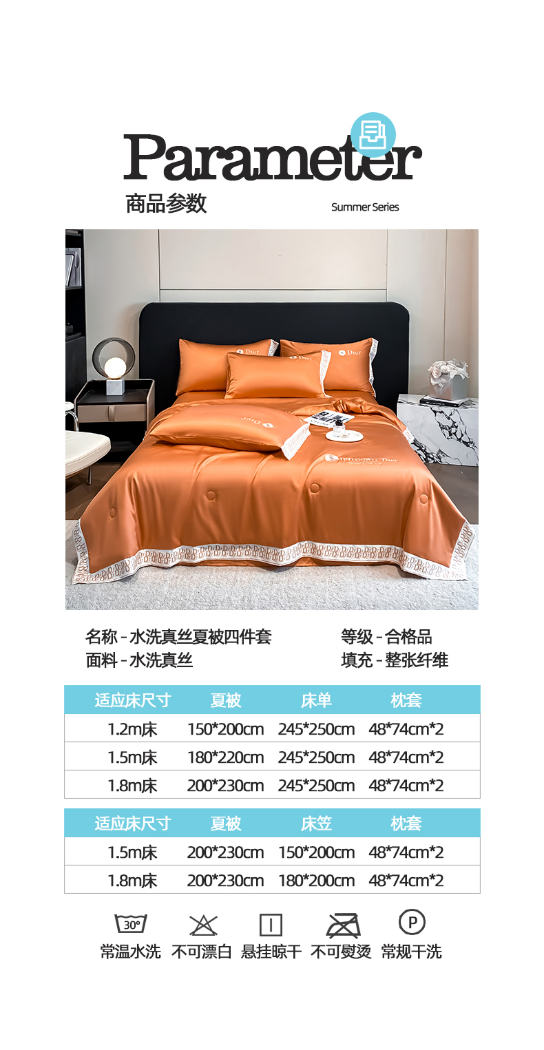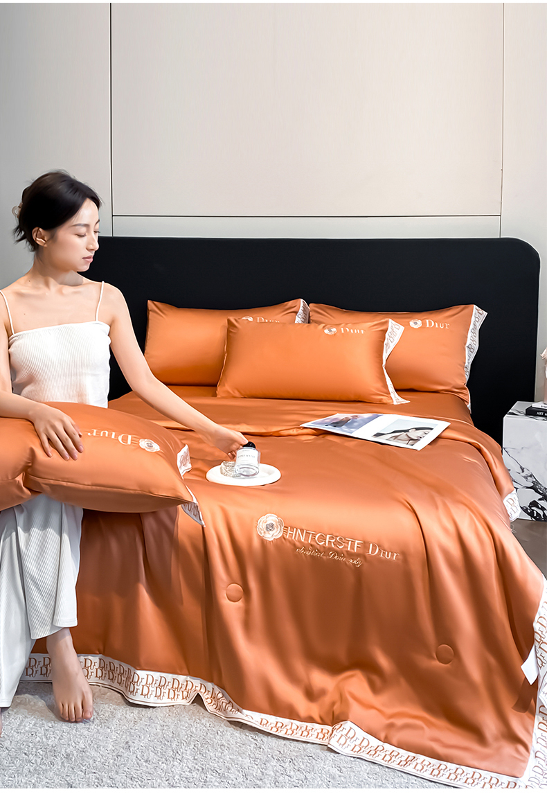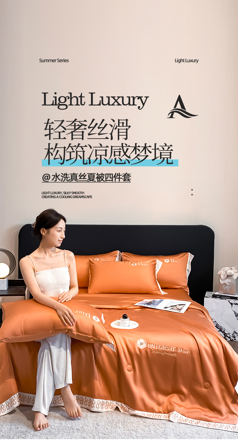 • 91家纺网 家纺一手货源 找家纺 露梦家纺 2026新款安迪水洗真丝夏被四件套 安迪-玛仕橘