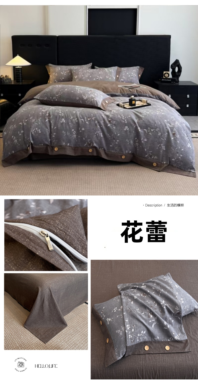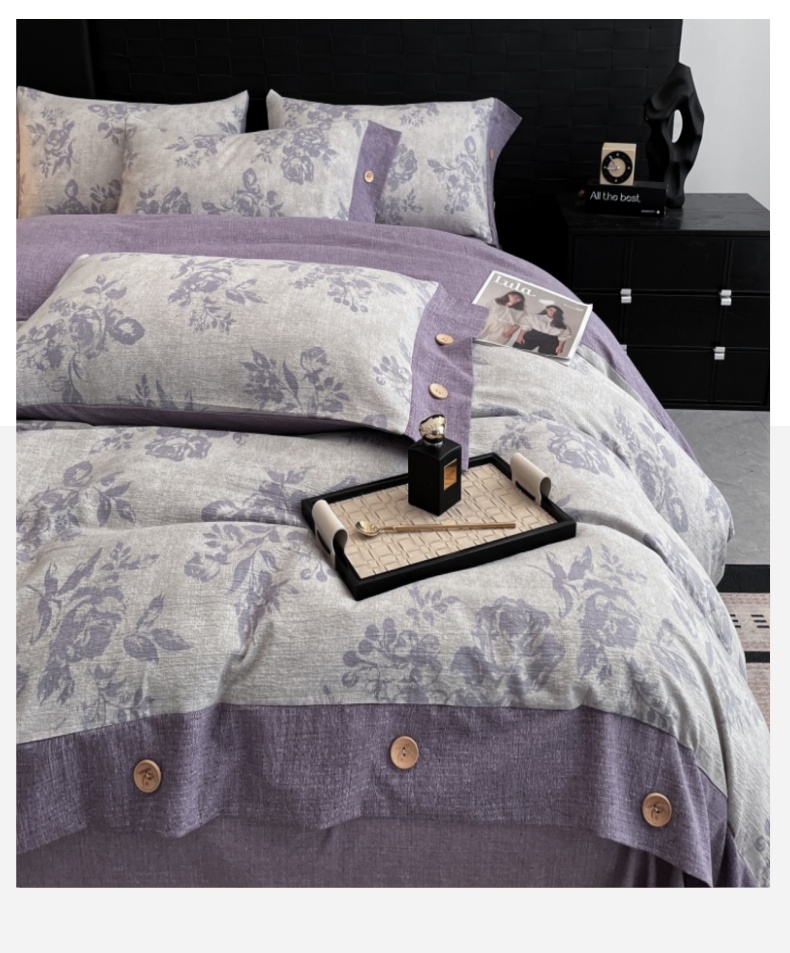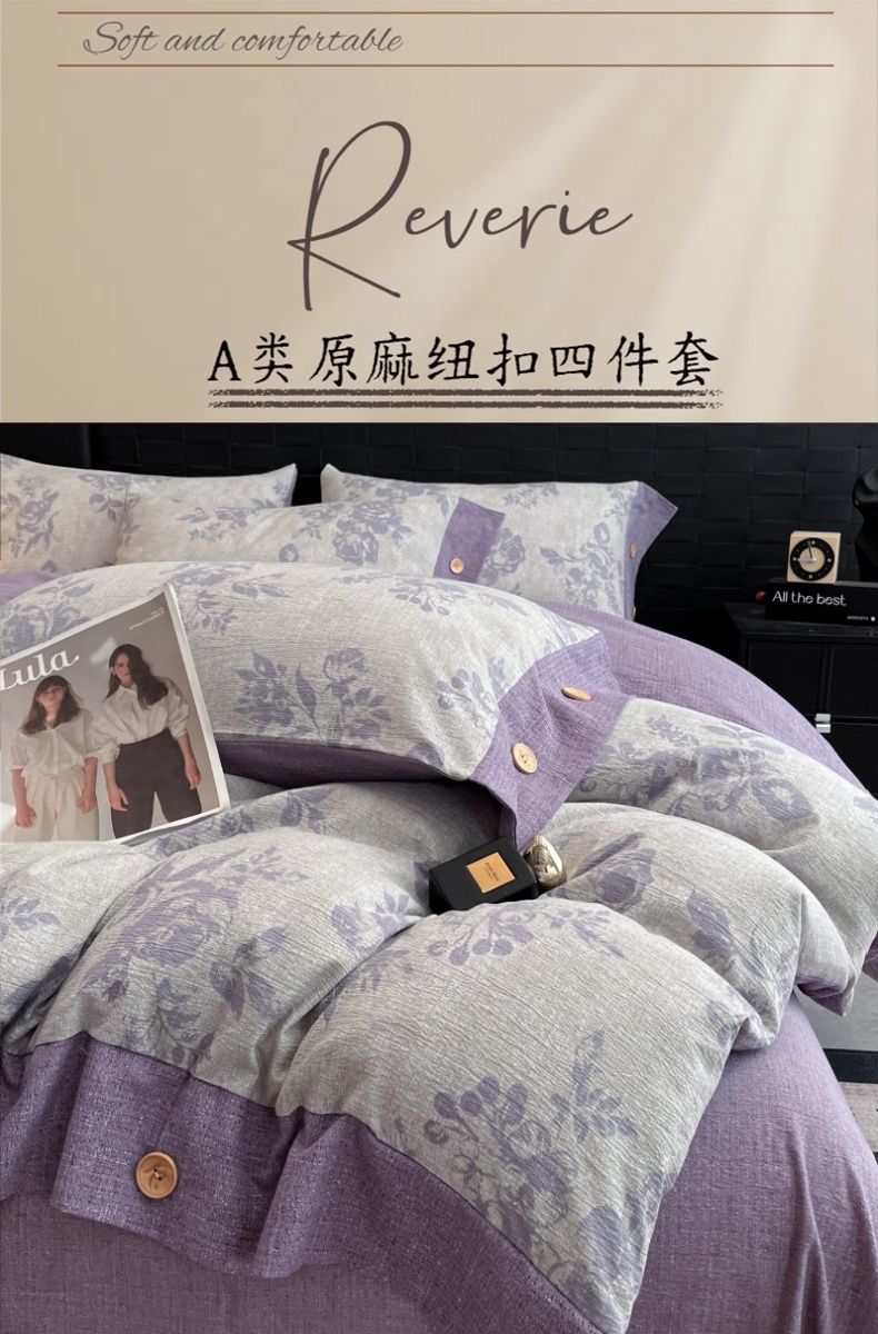 当前位置: 91家纺网 > 商品网购 > 床品套件 > 四件套 > 其它四件套 > 圣比熊 2026春夏新款A类原麻纽扣四件套加厚被套床单宿舍双人床仿亚麻套件-最新款 古堡花园-紫