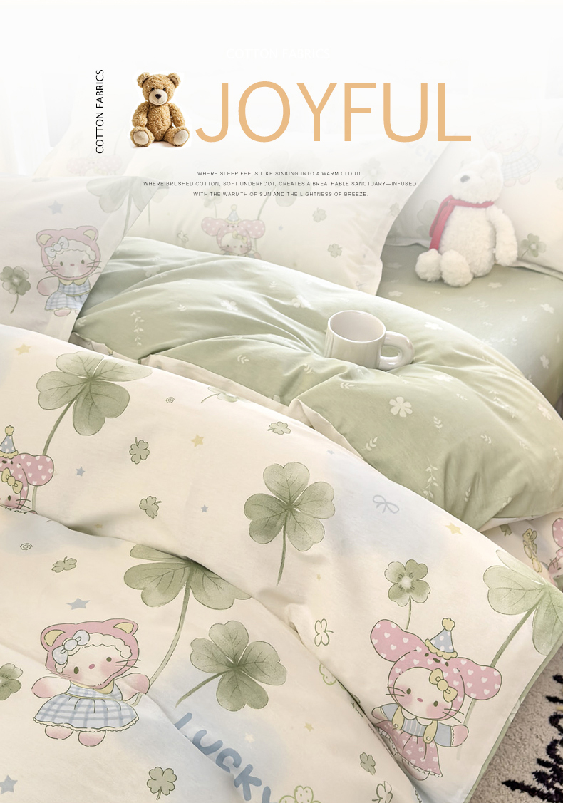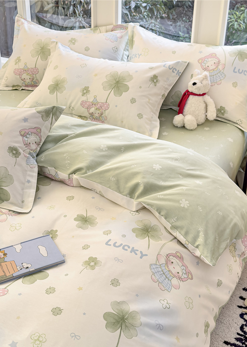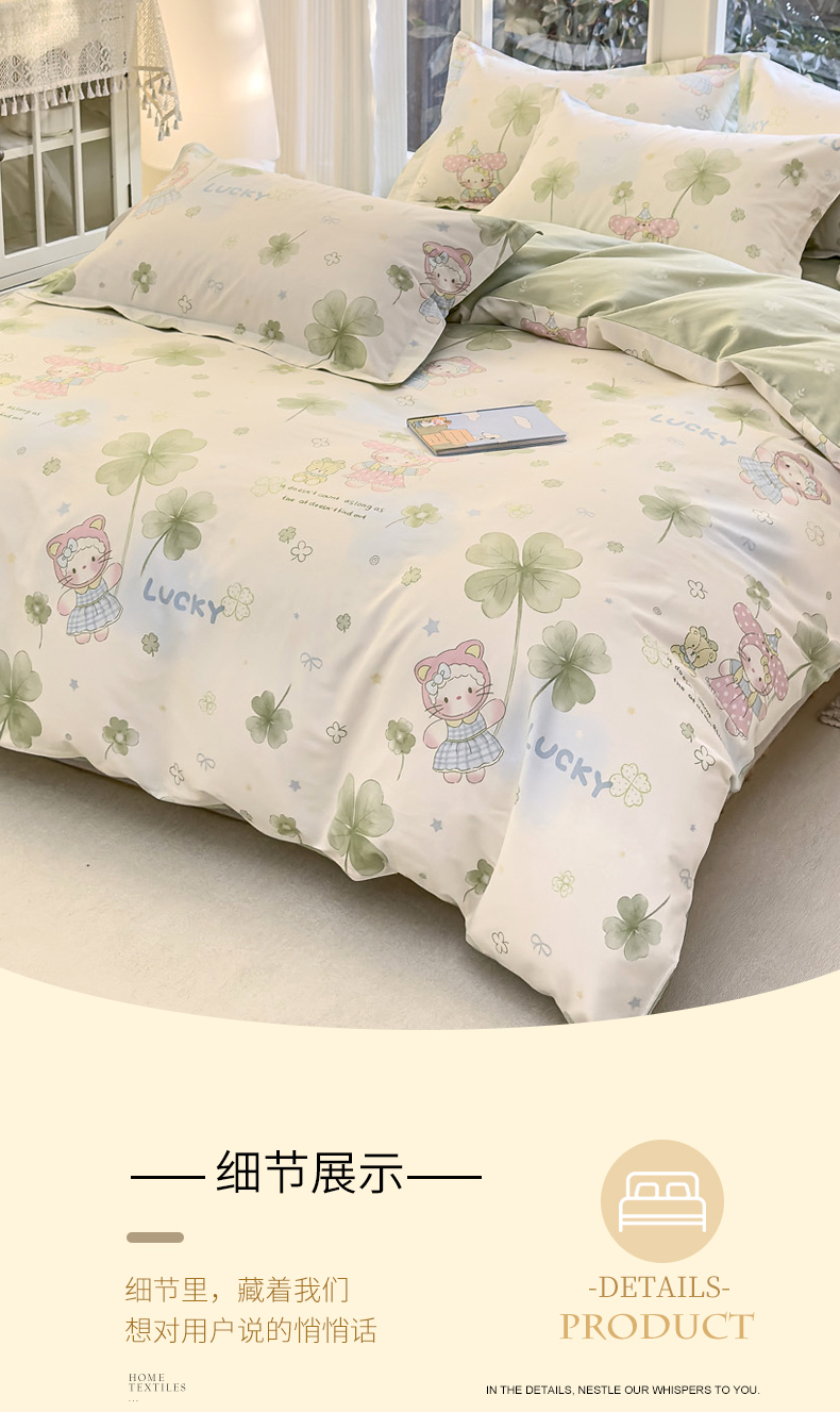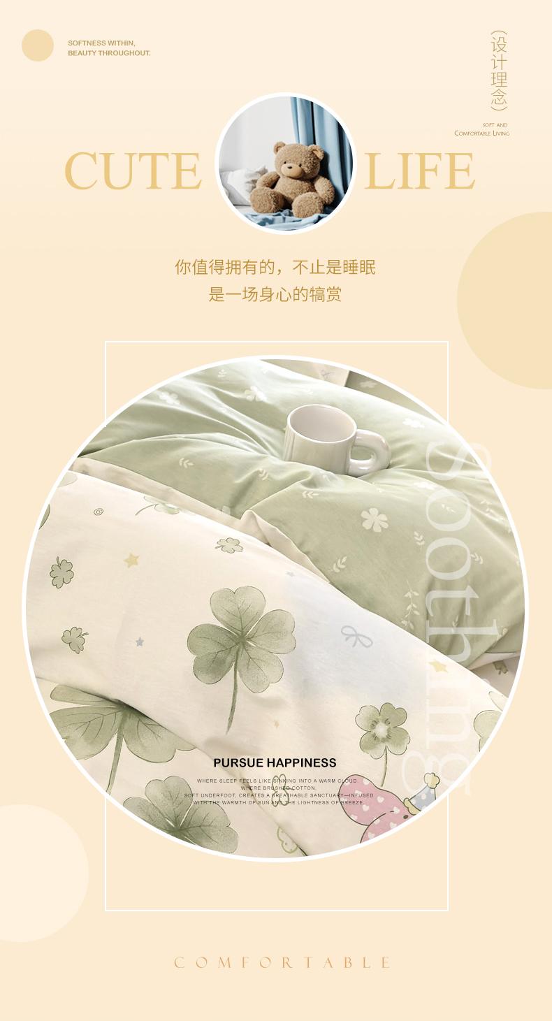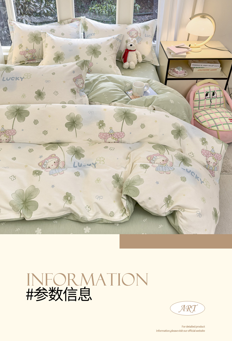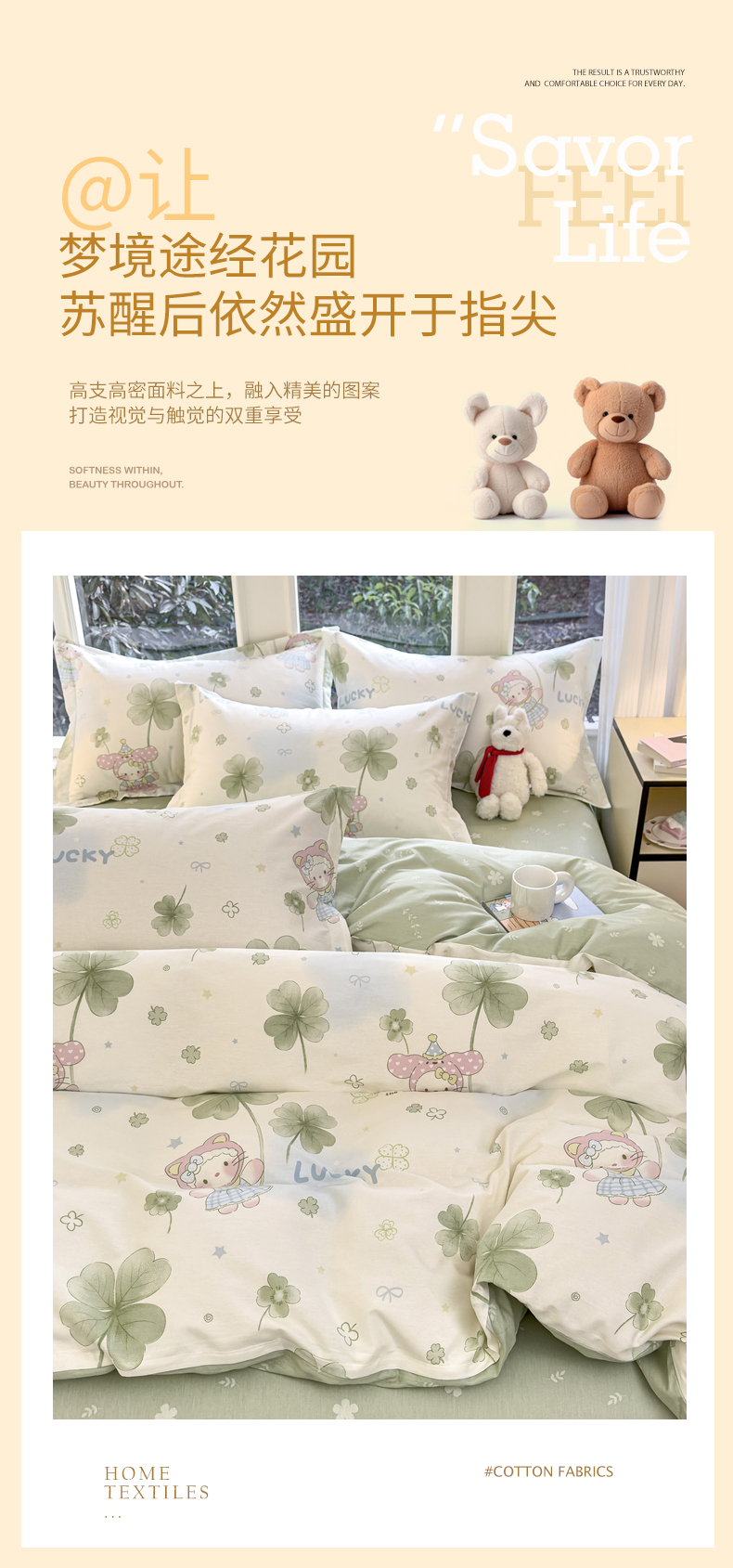 商品名称:洺兰家居 2026新款全棉纯棉13070小清新印花单被套被套单件 幸运四叶草