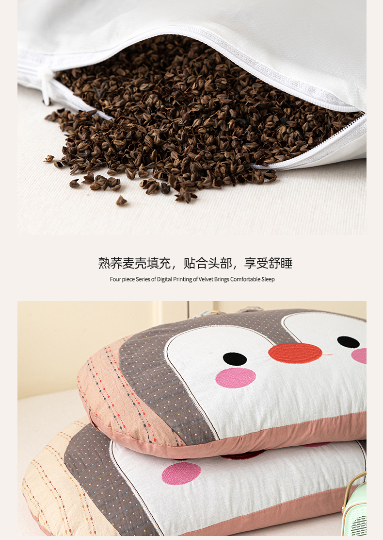 商品名称:卓昌枕芯 2026新款全棉卡通小企鹅荞麦枕可拆洗枕头枕芯 企鹅 -卡其