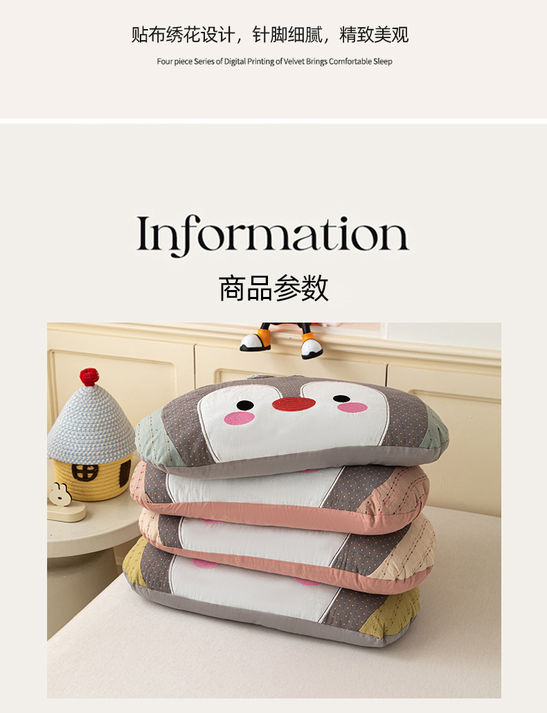 (总)卓昌枕芯 2026新款全棉卡通小企鹅荞麦枕可拆洗枕头枕芯,组合图仅供展示不可下单,企鹅 -粉,企鹅 -黄,企鹅 -卡其,企鹅 -绿