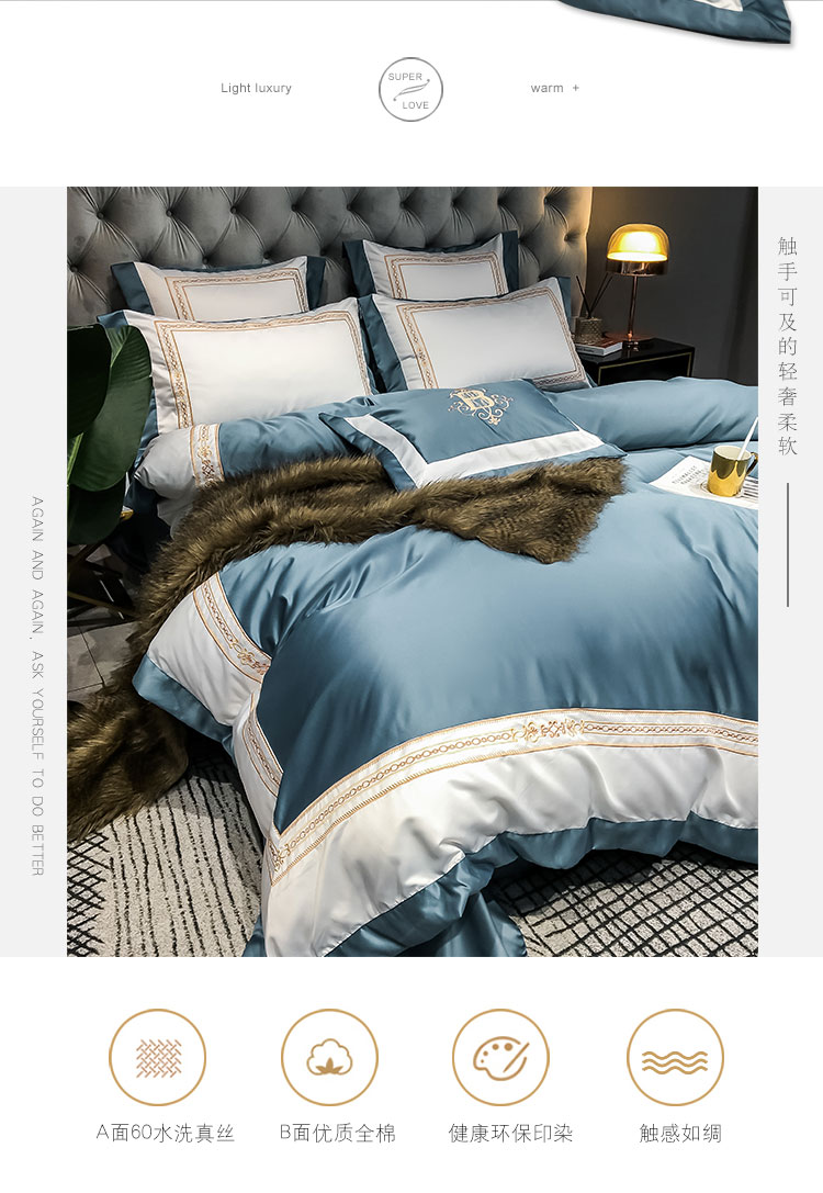 2023新款3m天丝四件套维秘花园 轻盈蓝,轻盈蓝