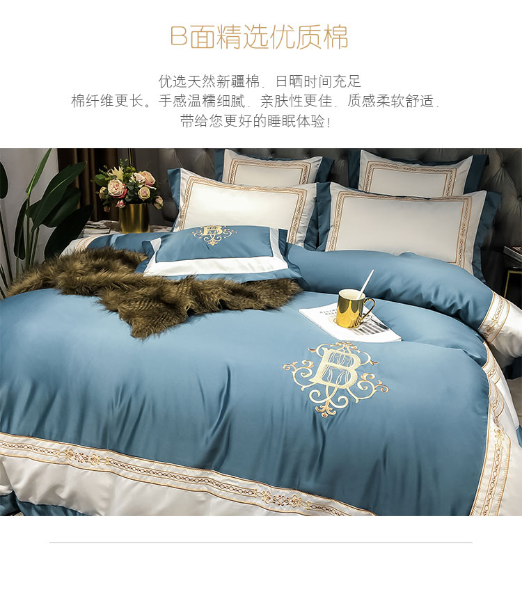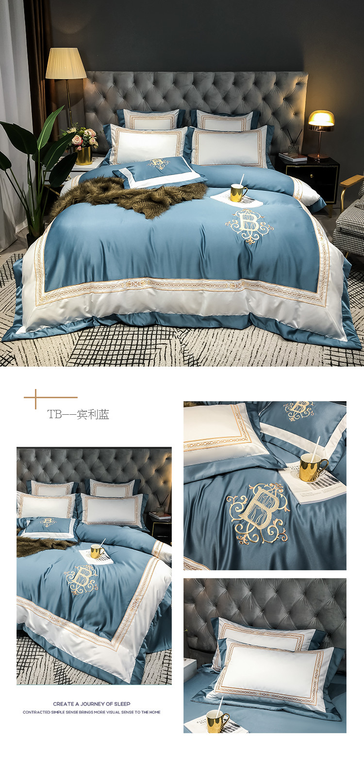 安妮家居 2020新款TB大牌风贡缎全棉四件套影棚图 宾利蓝