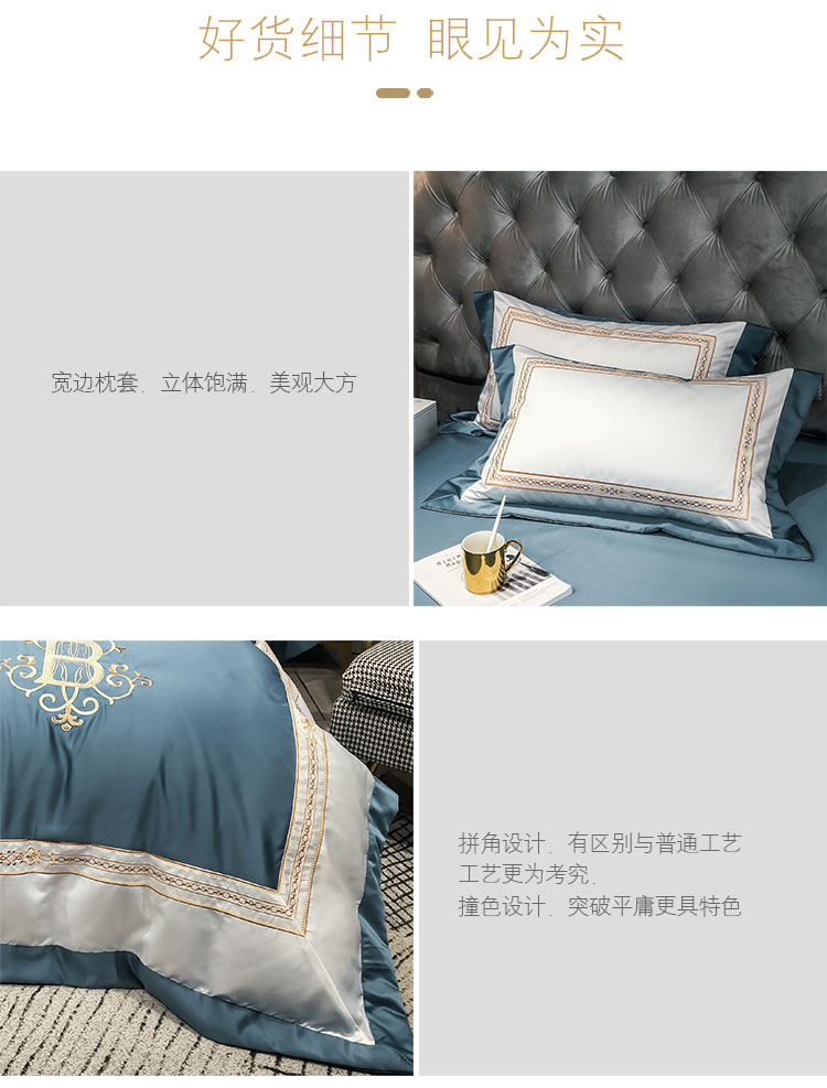 商品名称:安妮家居 2020新款TB大牌风贡缎全棉四件套影棚图 宾利蓝