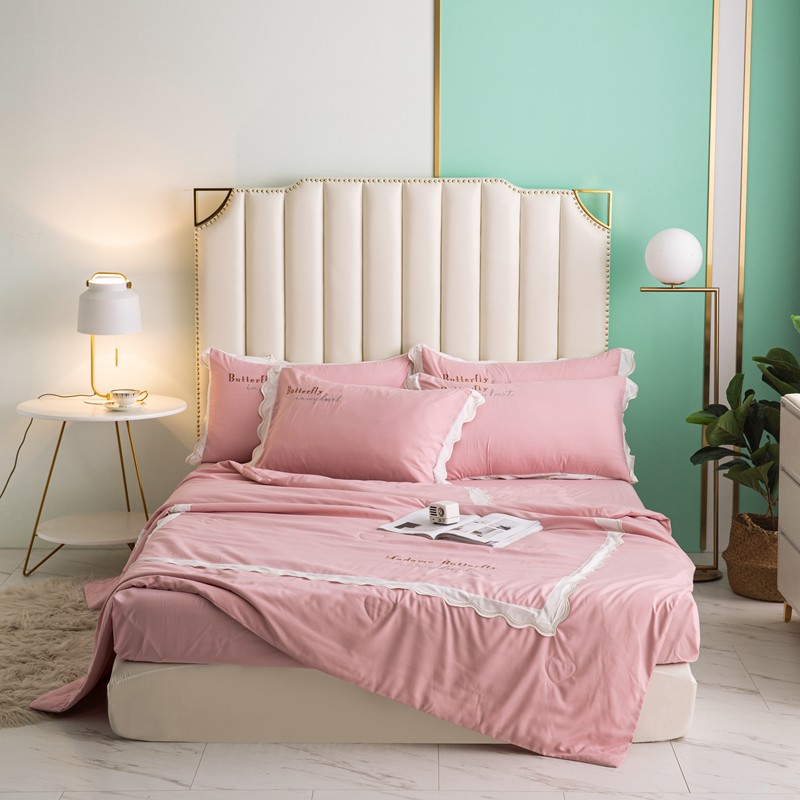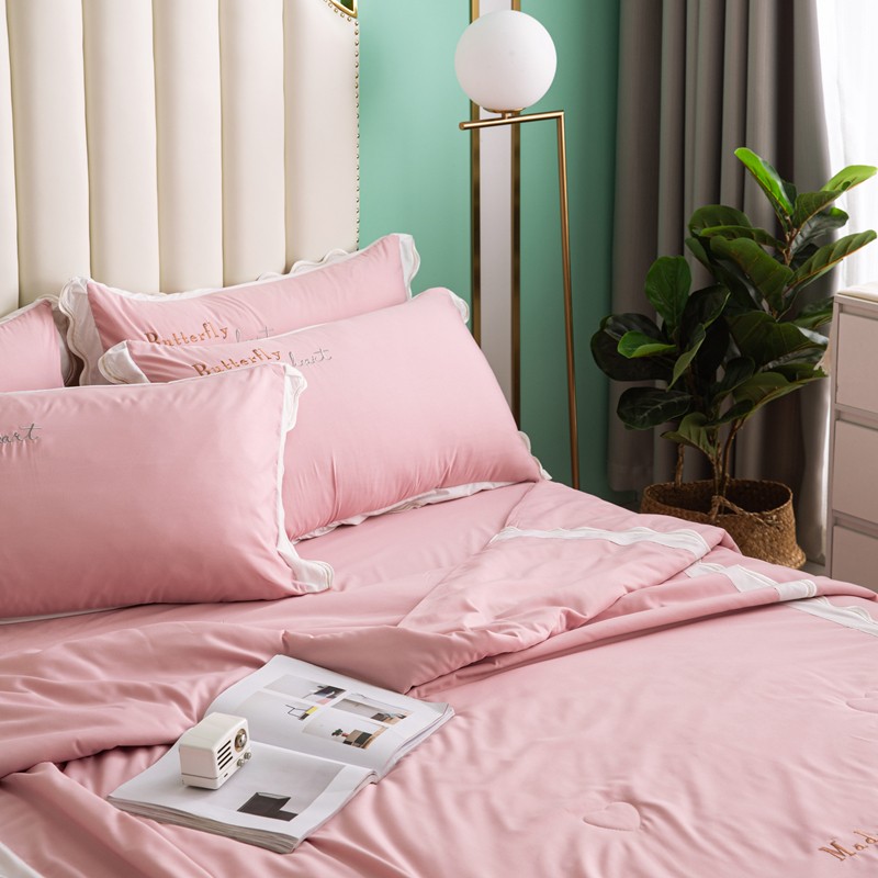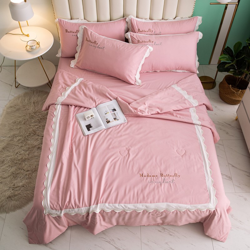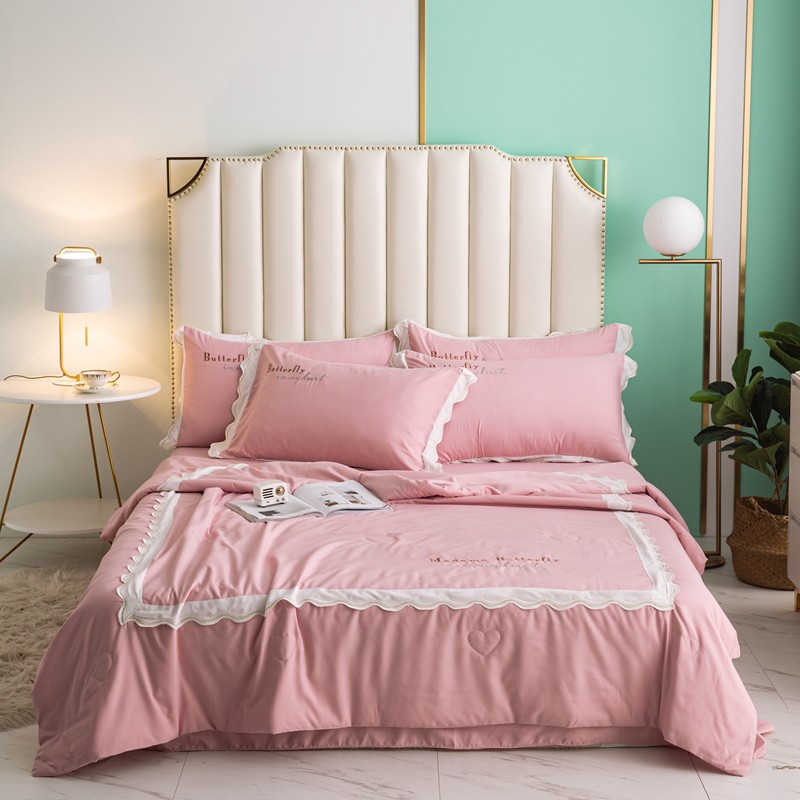 安妮家居 2021新款法式仙女风水洗刺绣夏被四件套 少女粉