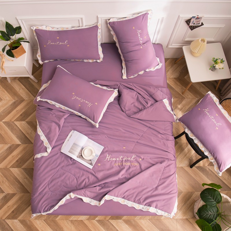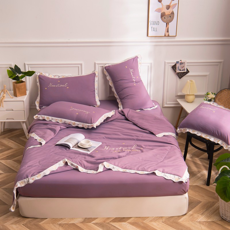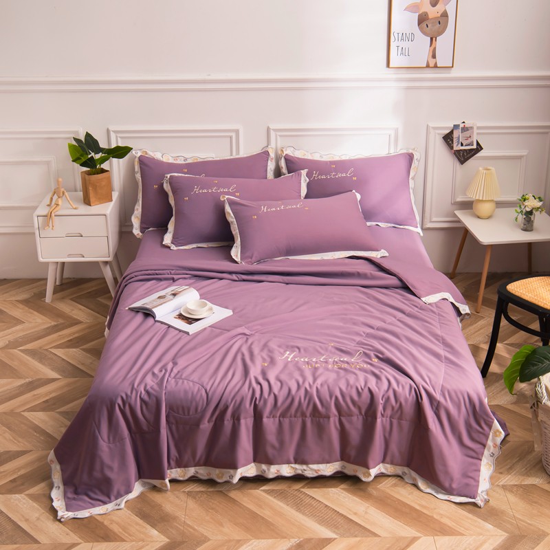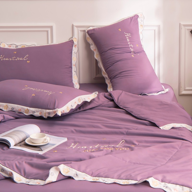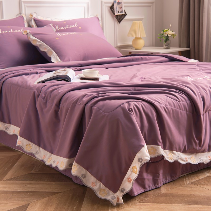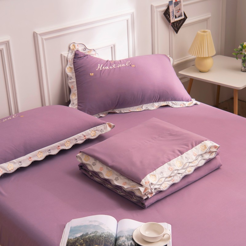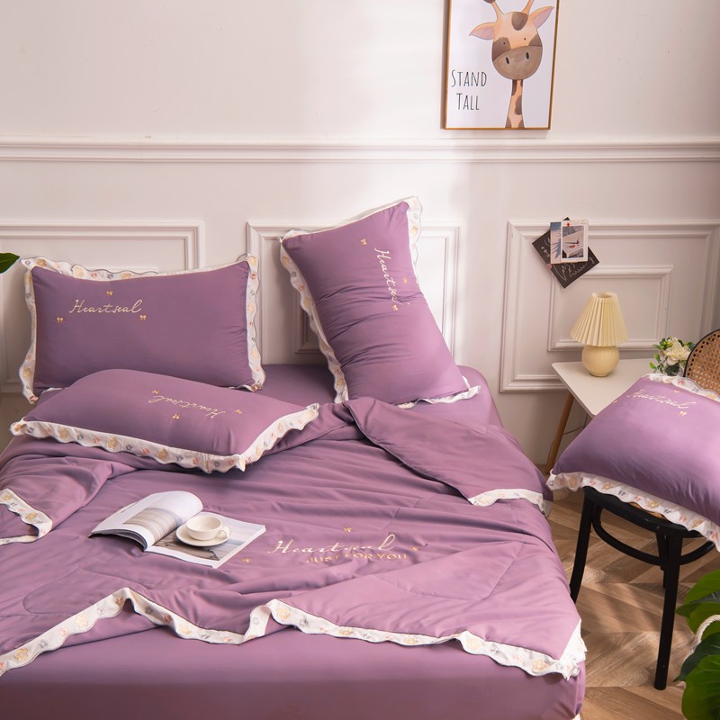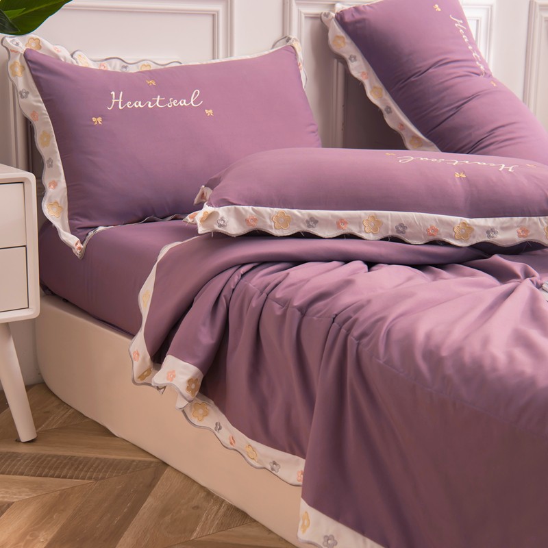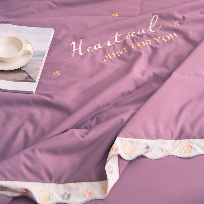 安妮家居 2021新款泫雅风水洗刺绣夏被四件套 优雅紫