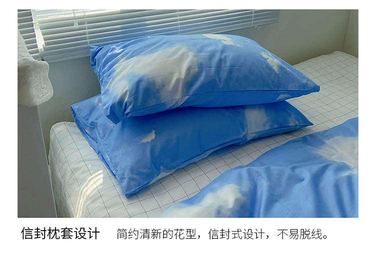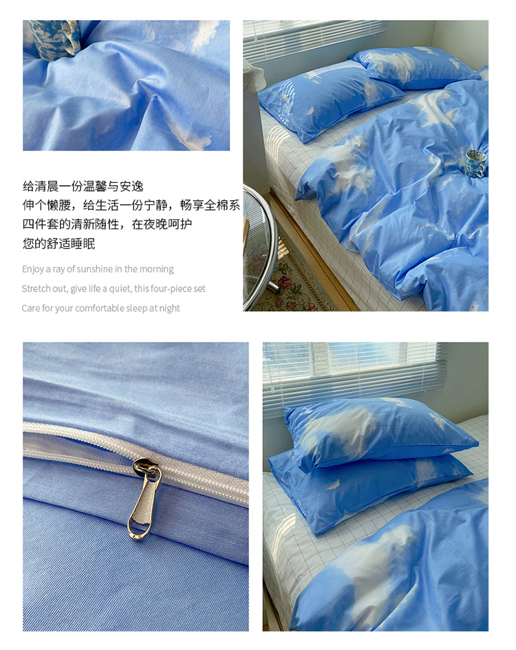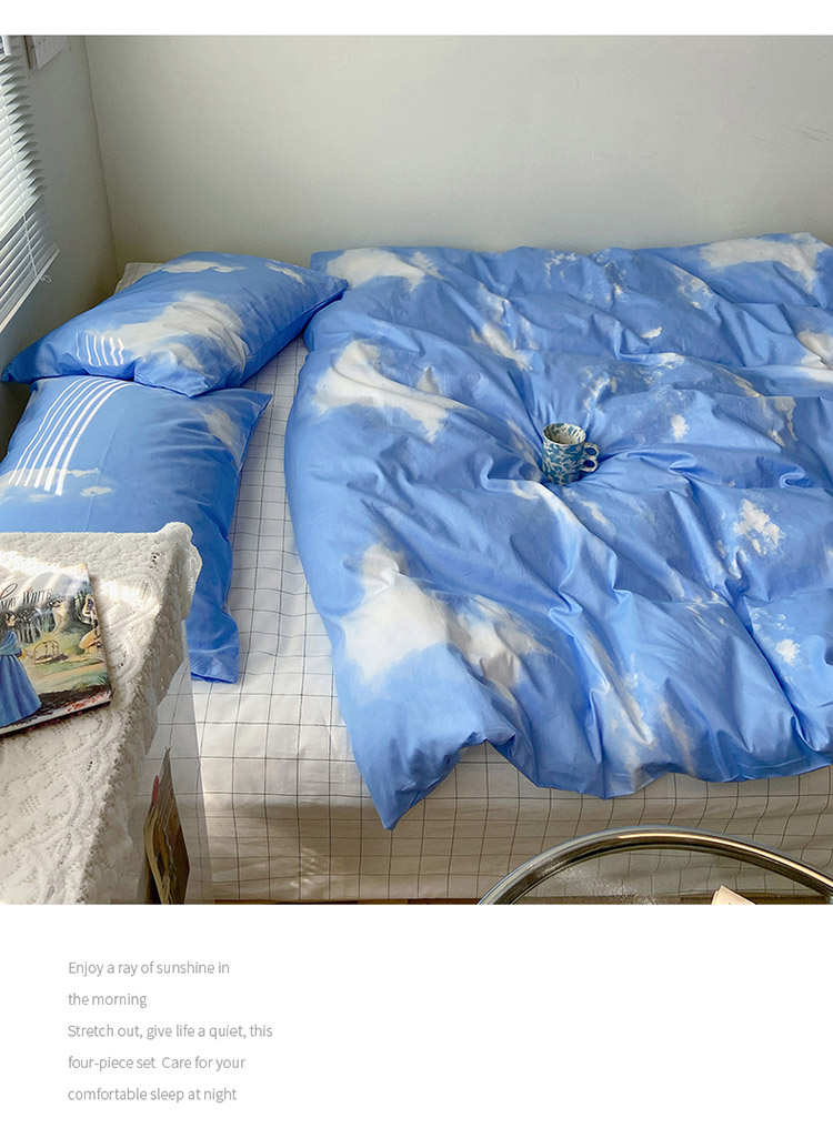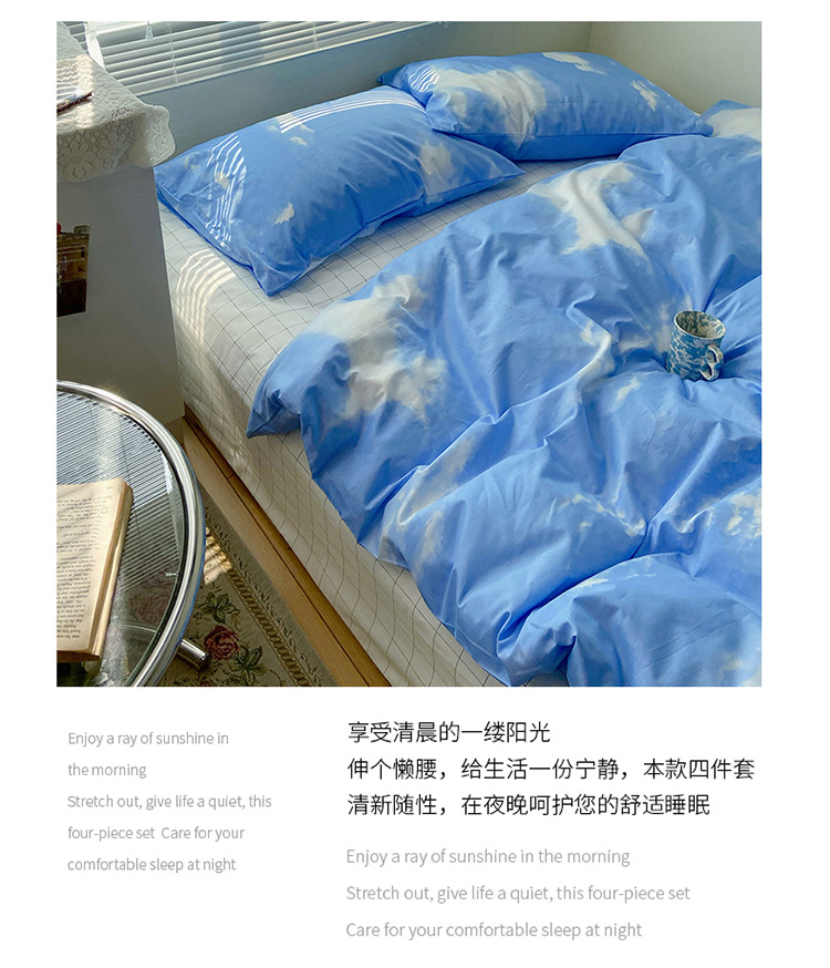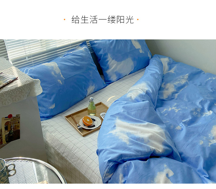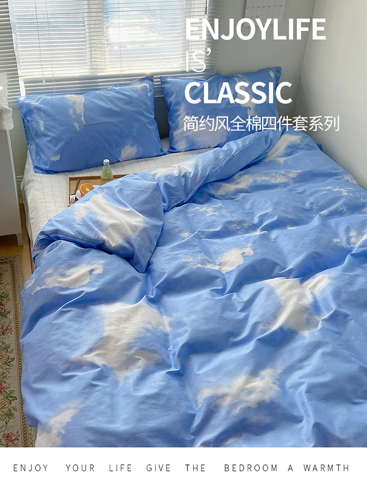 2021新款简约风40s13372全棉喷气四件套 蓝天白云