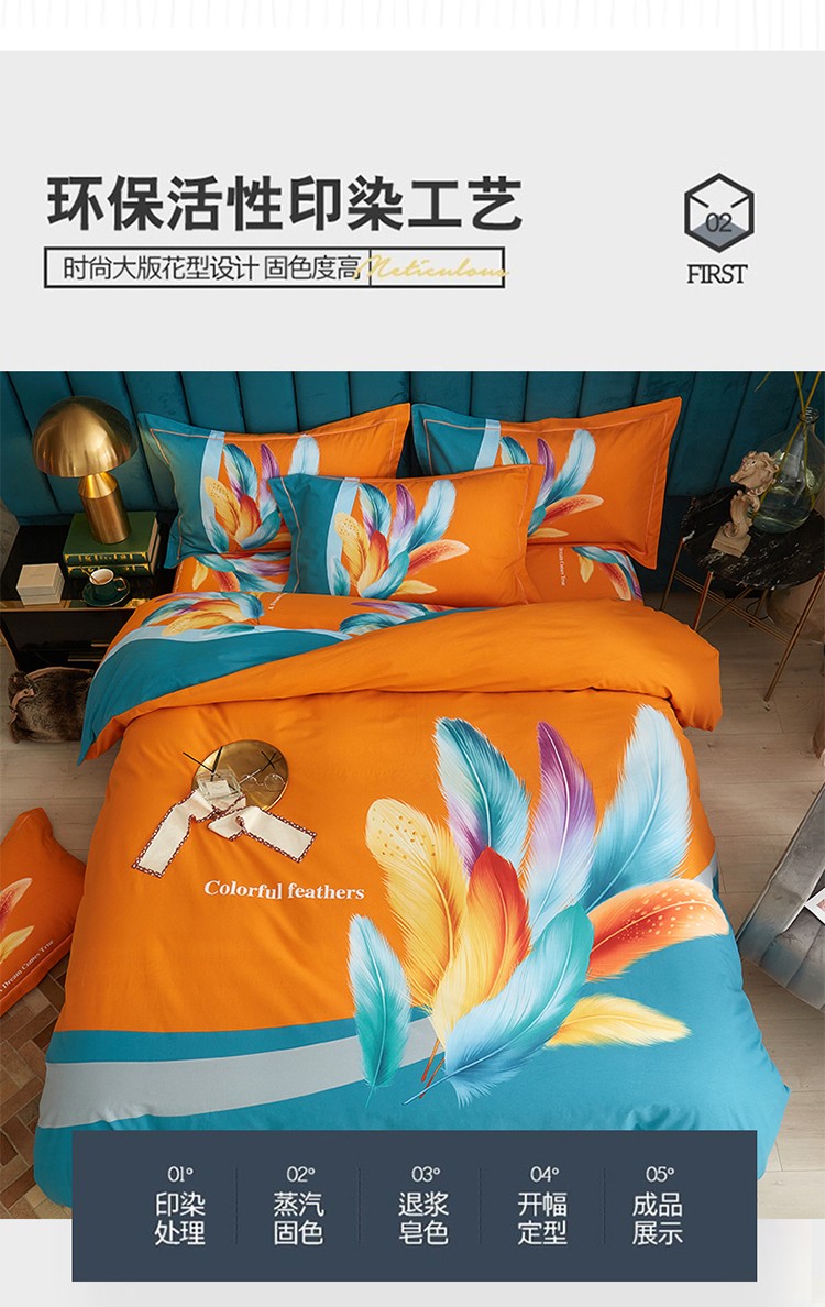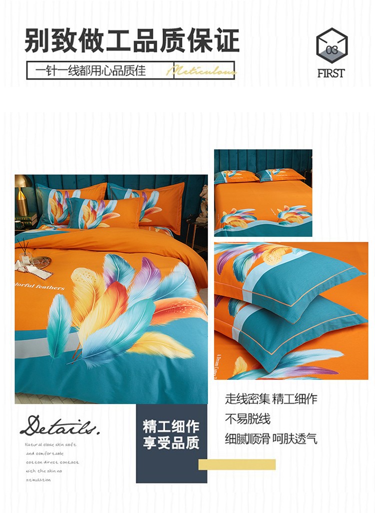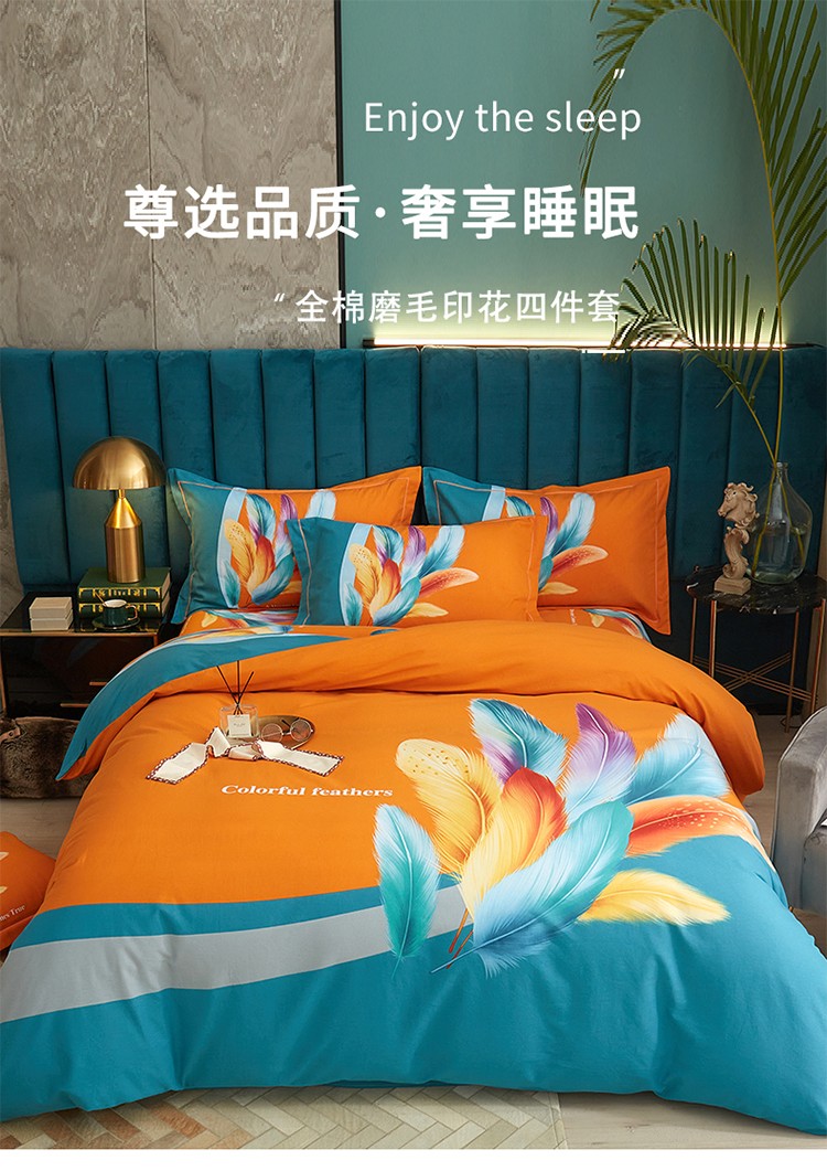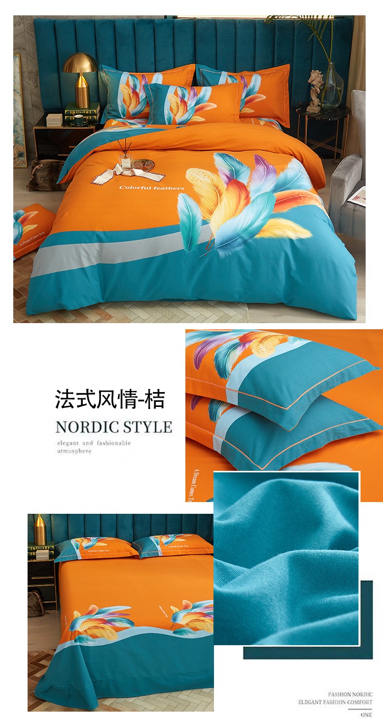 商品名称:金纱玉纺2022新款全棉生态大版磨毛四件套 法式风情-桔