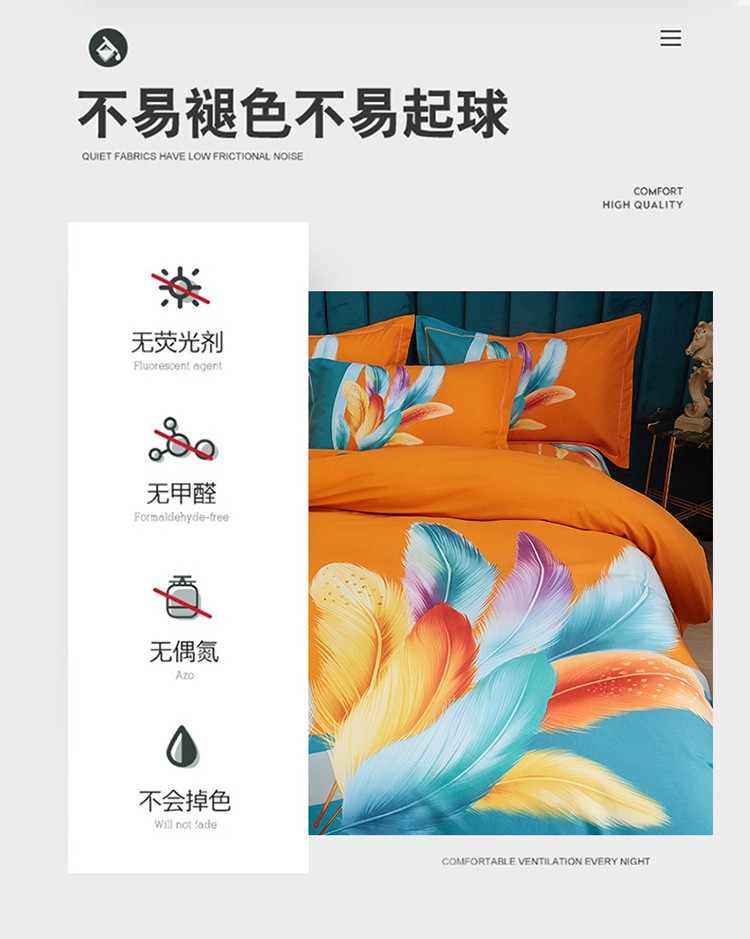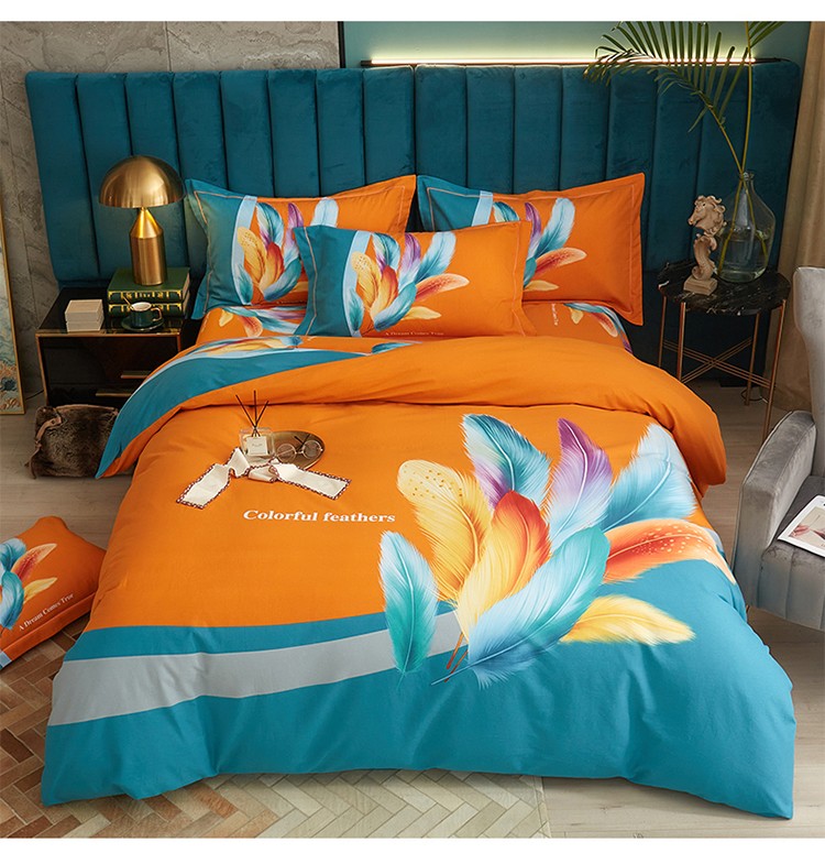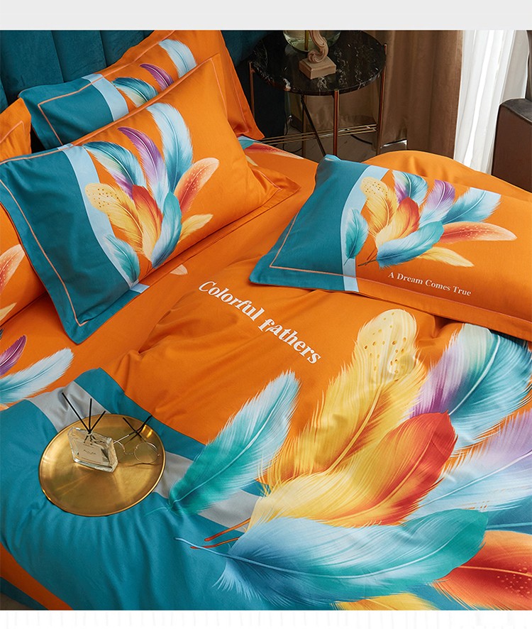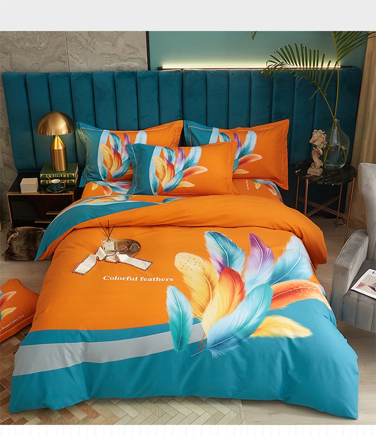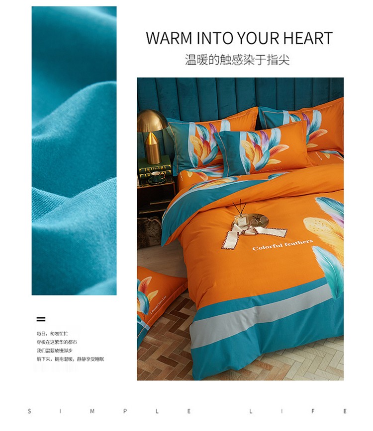 商品名称:金纱玉纺2022新款全棉生态大版磨毛四件套 法式风情-桔