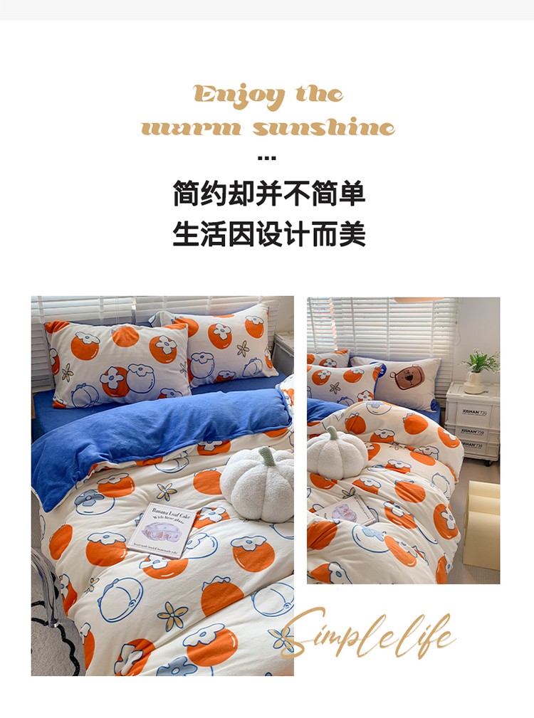 澳萝拉 2022新款牛奶绒印花四件套 好柿发生
