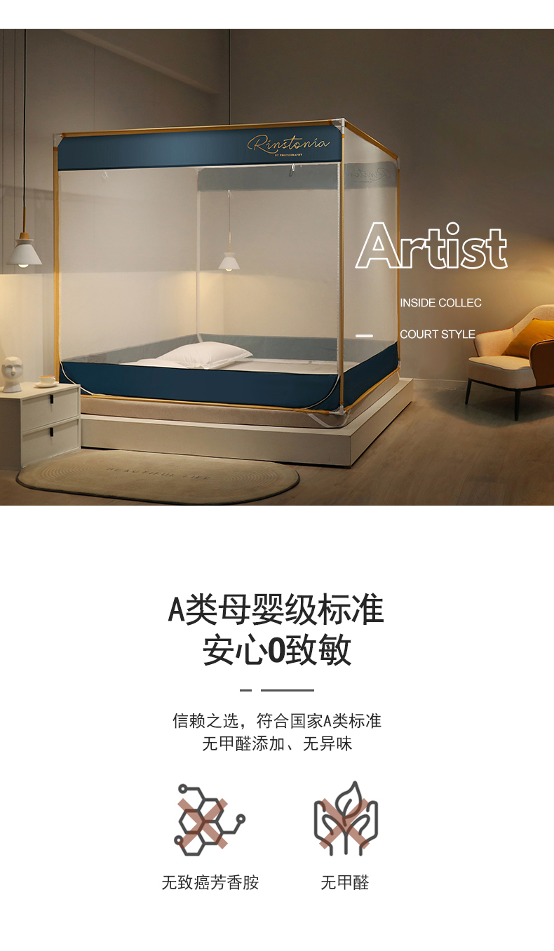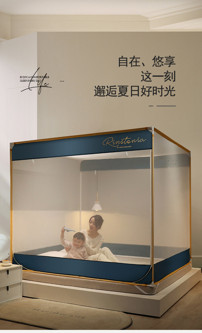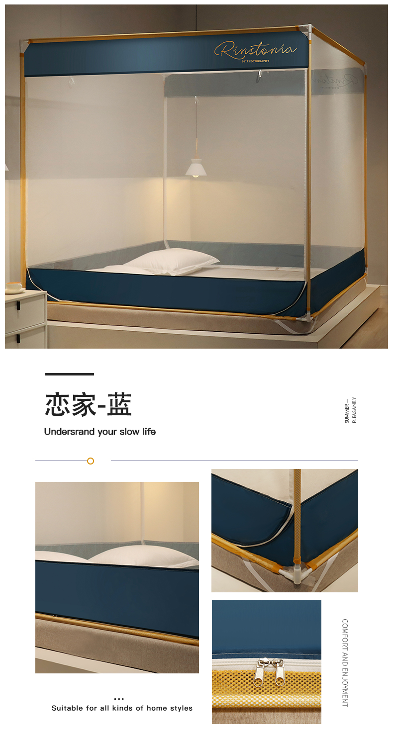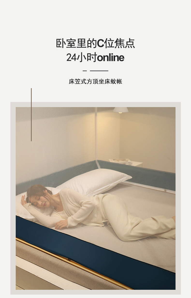 当前位置: 91家纺网 > 商品网购 > 床上用品 > 蚊帐 > 坐床式蚊帐 > 佳梦家纺 2023新款方顶印花坐床蚊帐 恋家-蓝
