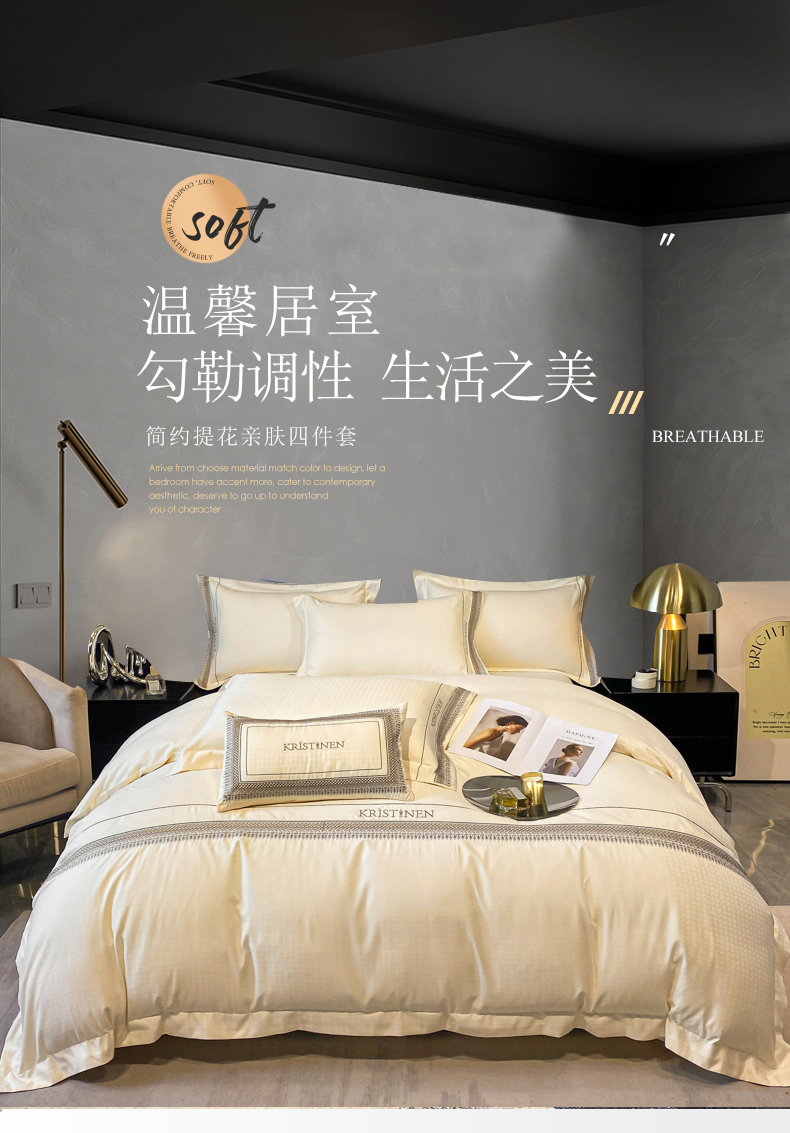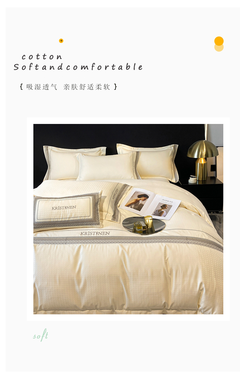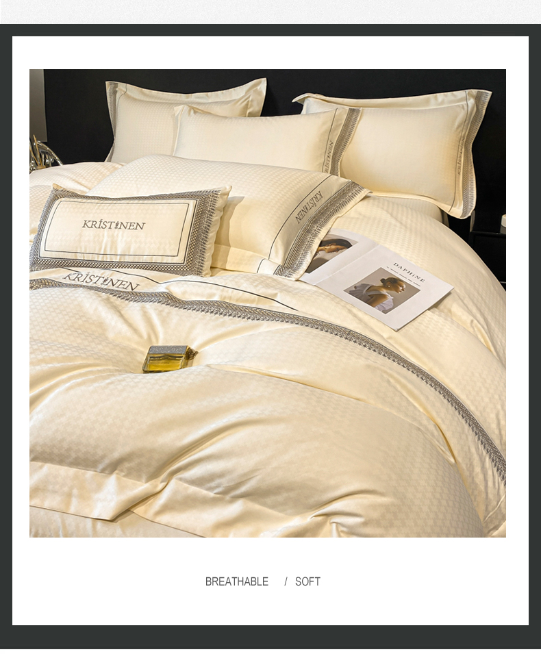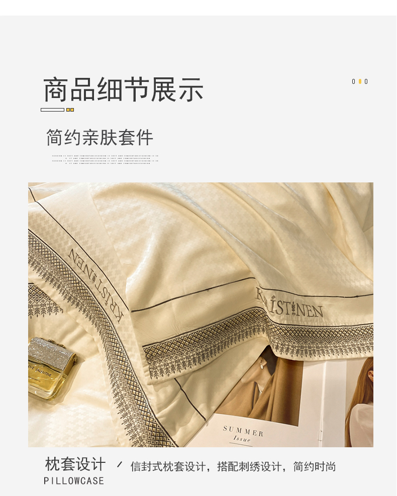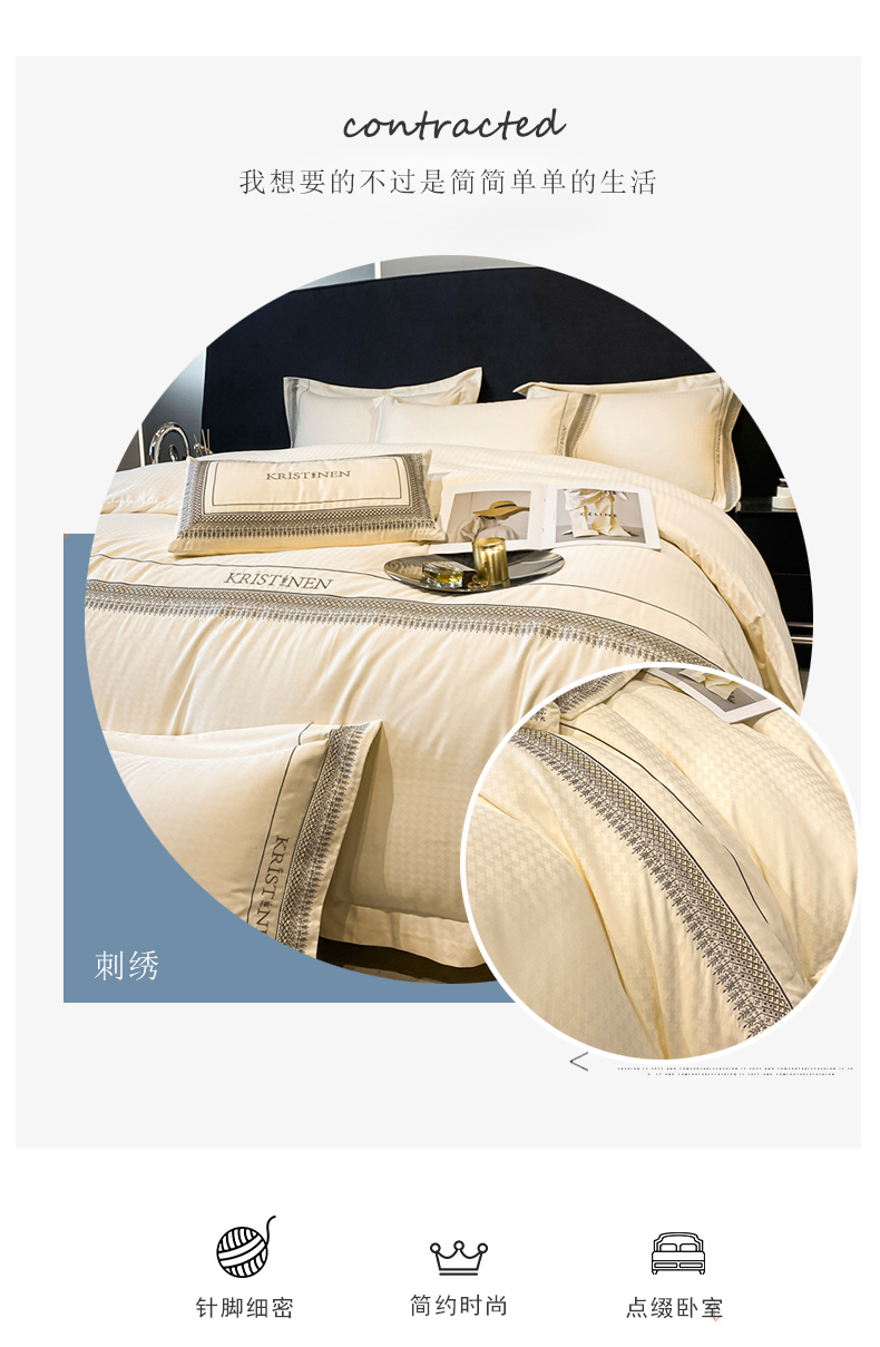 商品名称:安妮 2023新款简约提花刺绣四件套-缇娜夫人 缇娜夫人-奶白
