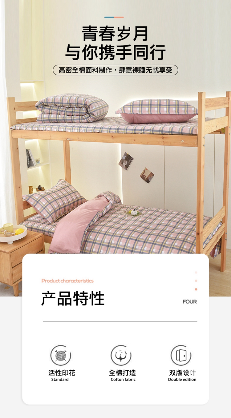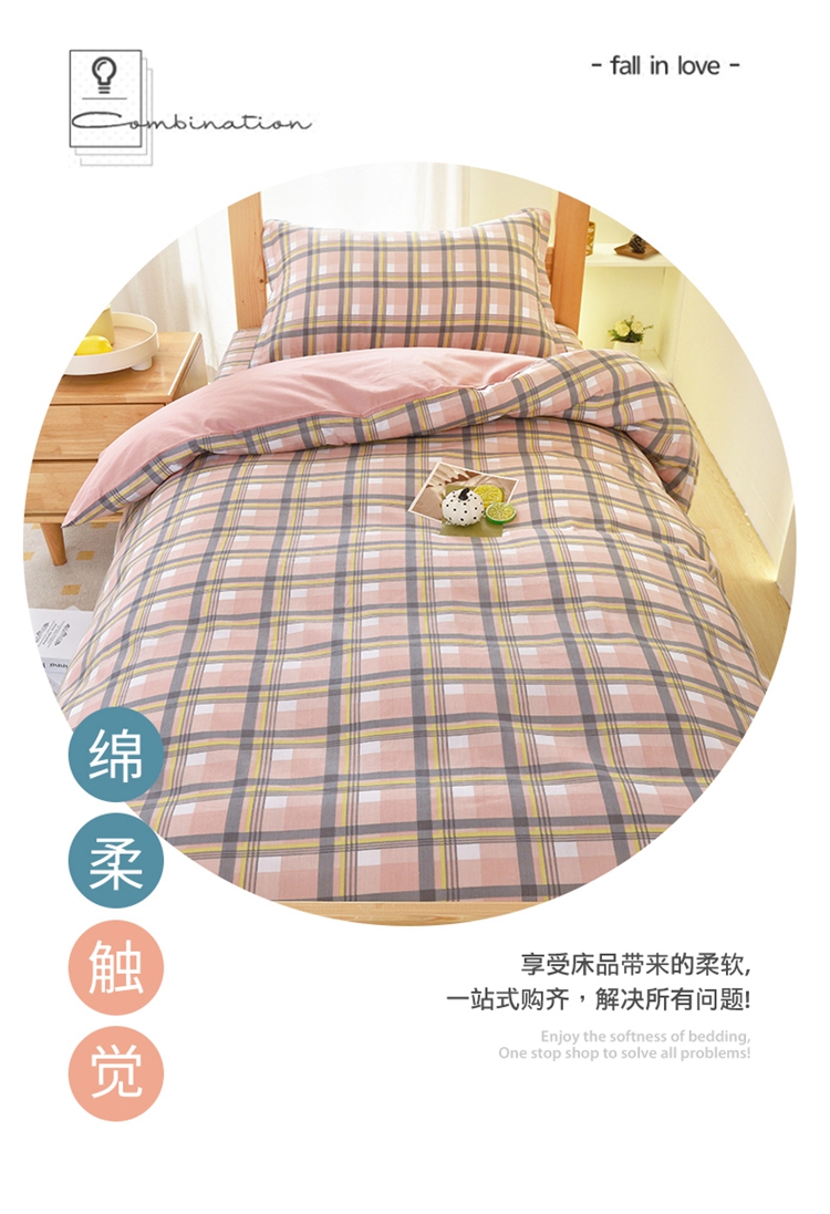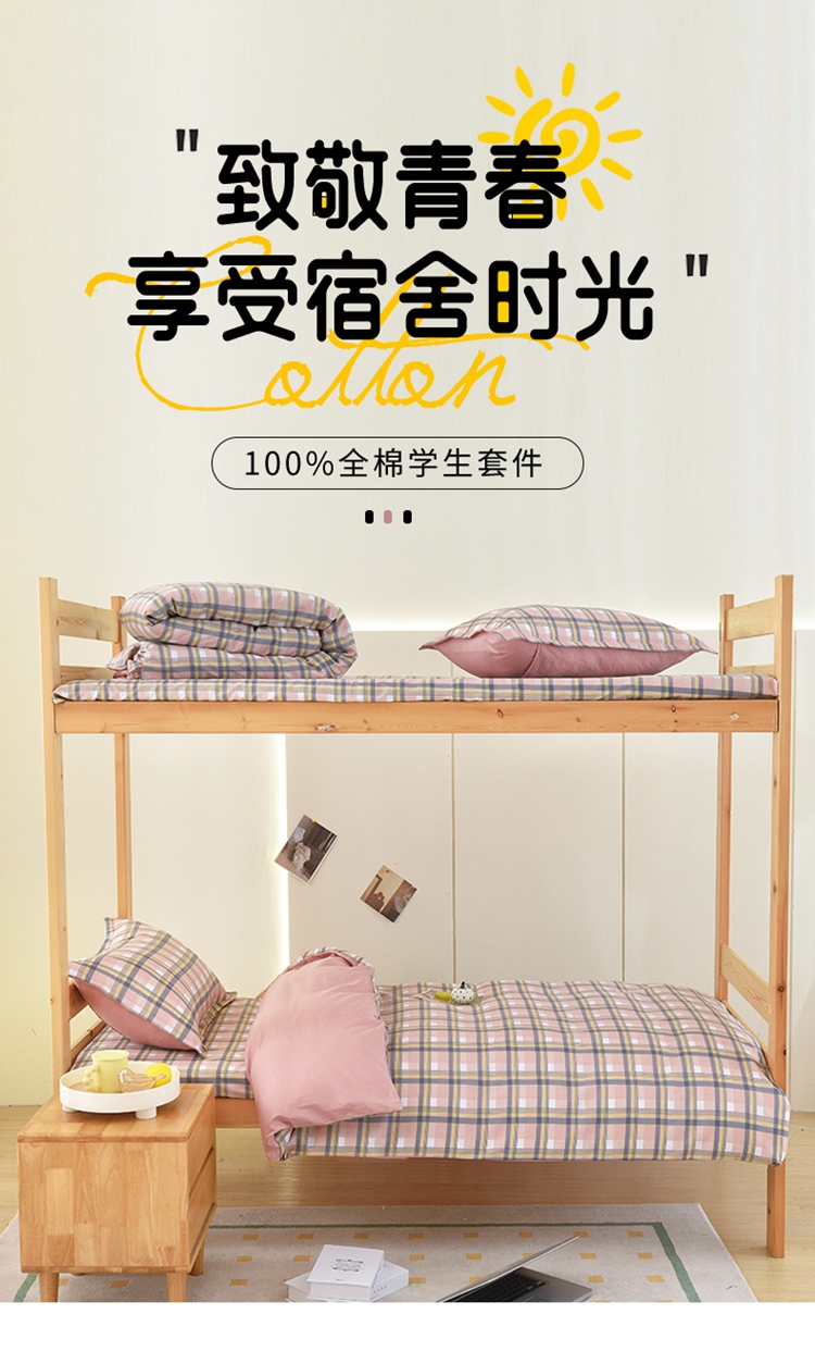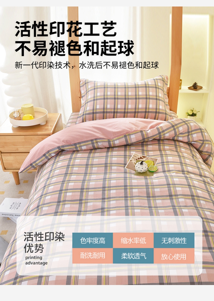 商品名称:朵希曼 2026新款全棉学生三件套 简格~粉