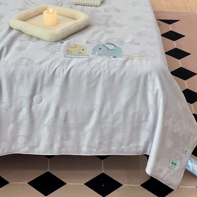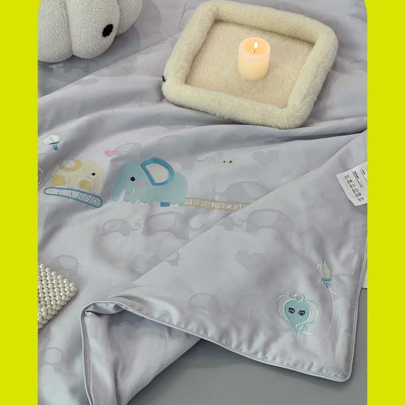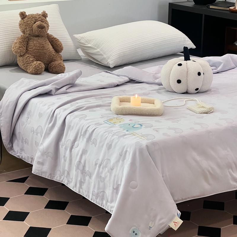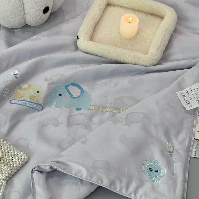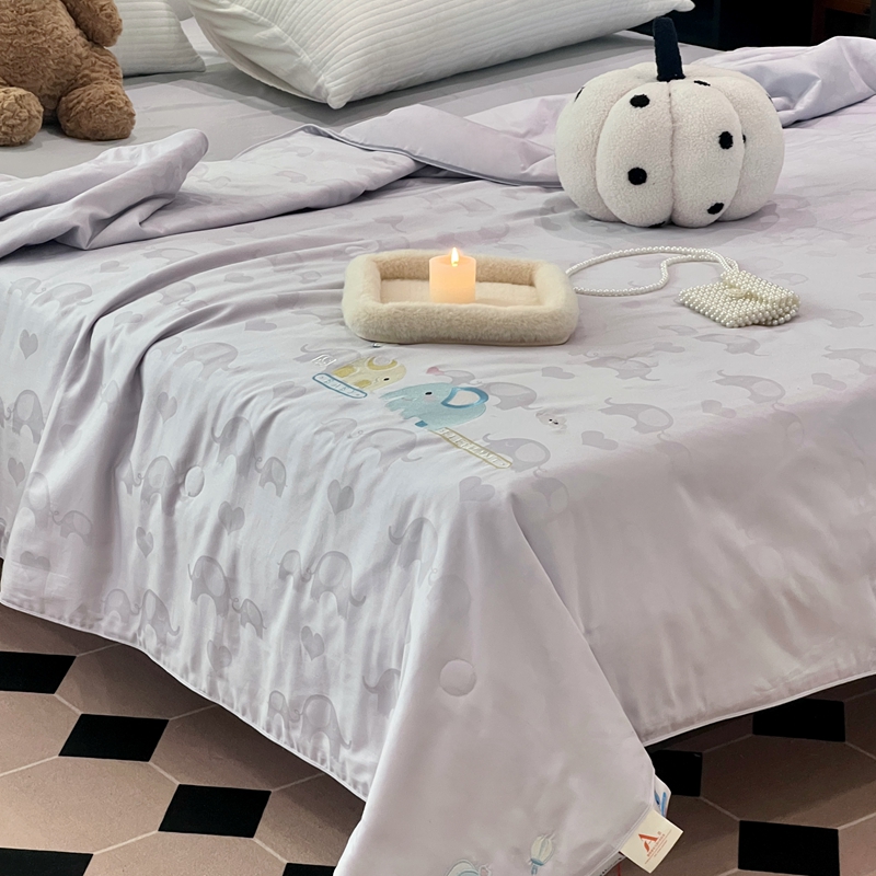 JUICY 橘滋家纺 2023新款双A类儿童全棉提花夏被-小象日记 小象日记-灰