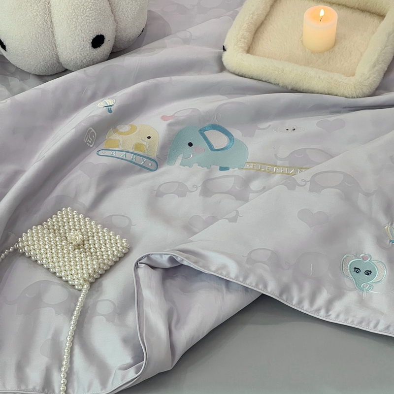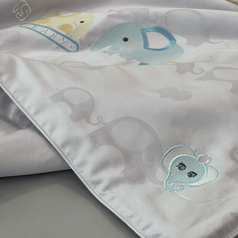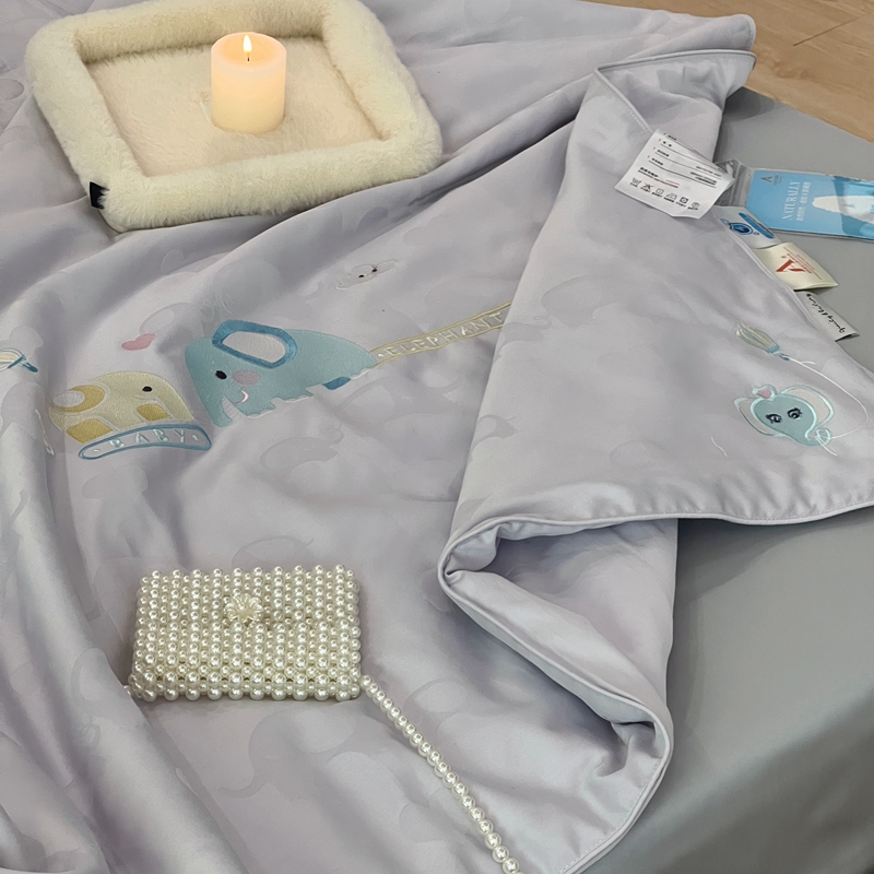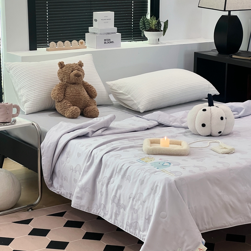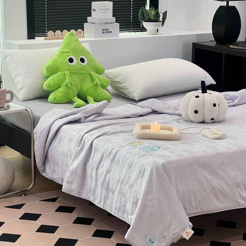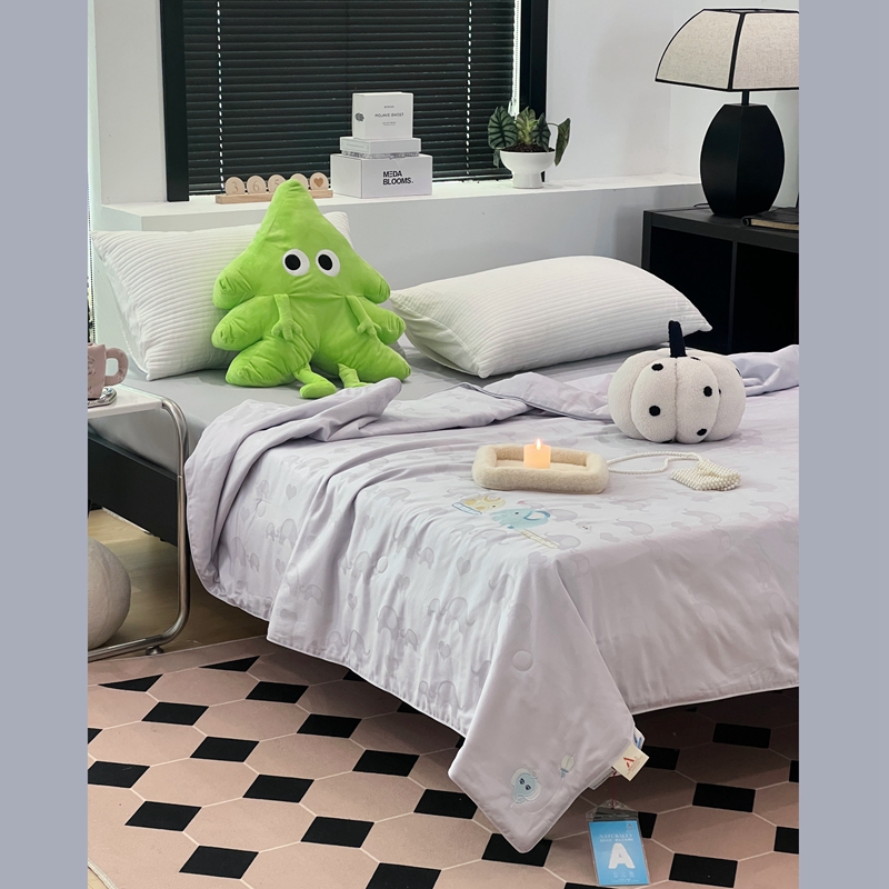 JUICY 橘滋家纺 2023新款双A类儿童全棉提花夏被-小象日记 小象日记-灰