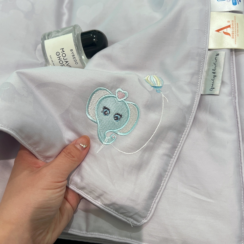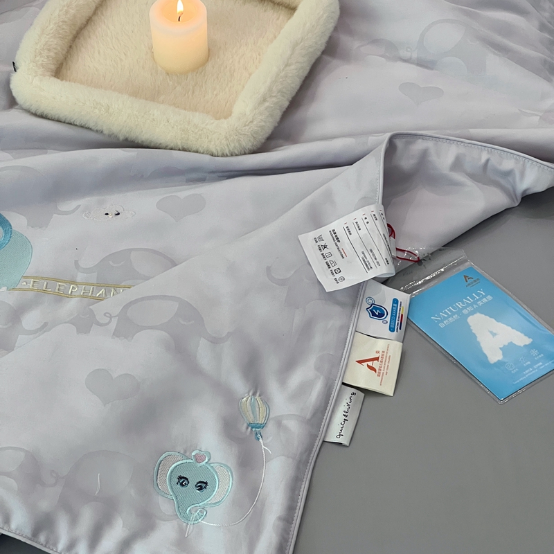商品名称:JUICY 橘滋家纺 2023新款双A类儿童全棉提花夏被-小象日记 小象日记-灰