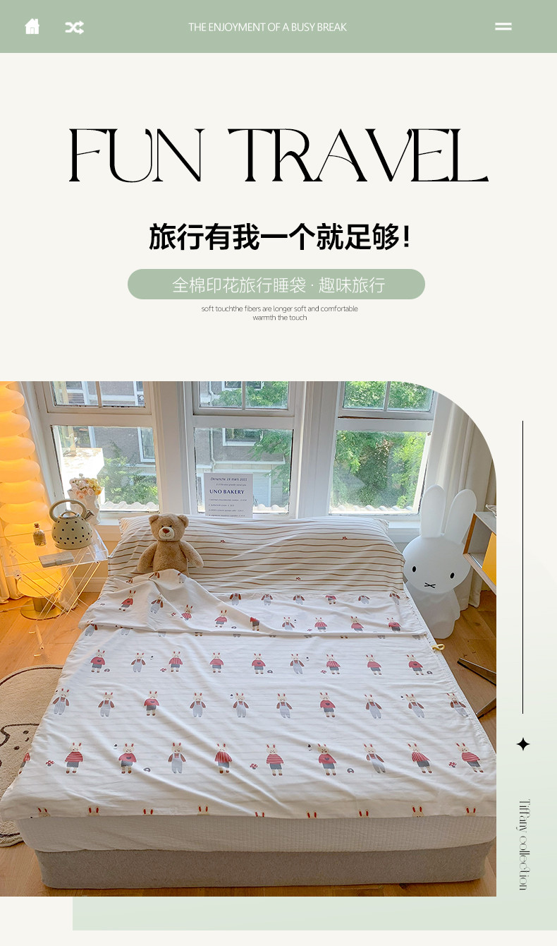 商品名称:澳萝拉2023新款全棉印花旅行睡袋 兔子酱