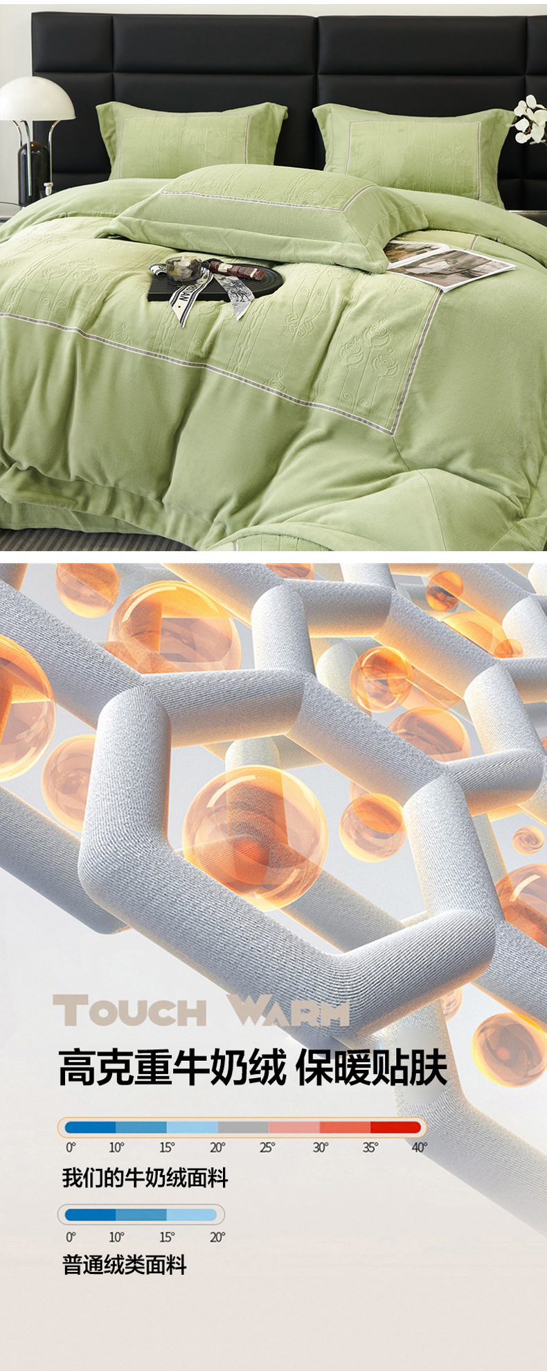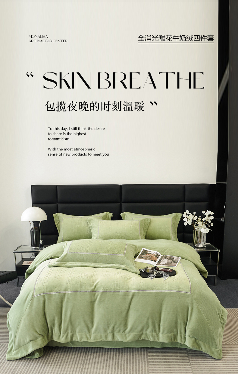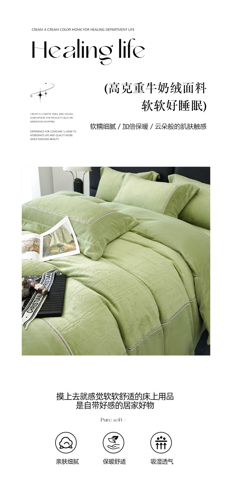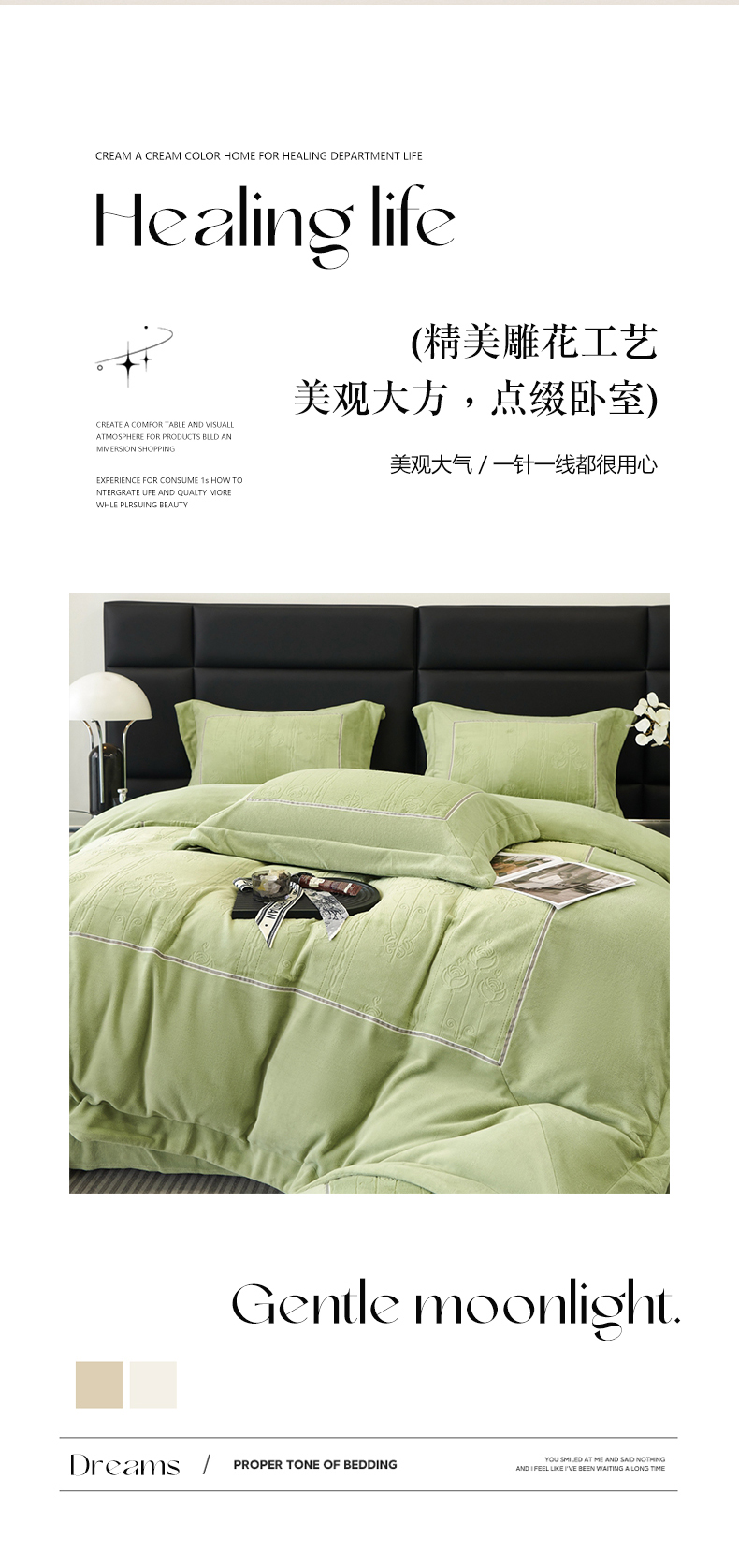 (总)榻尚 2023新款雕花牛奶绒婴肤暖绒四件套Queen-玫瑰花园,贵族白,牛油果,暖焦糖,松石绿,天空蓝,温柔粉