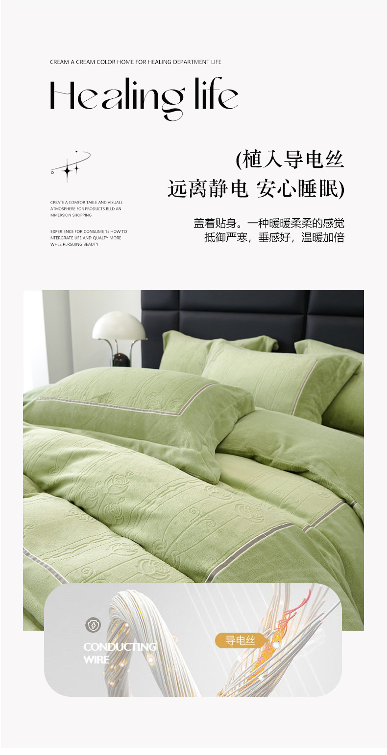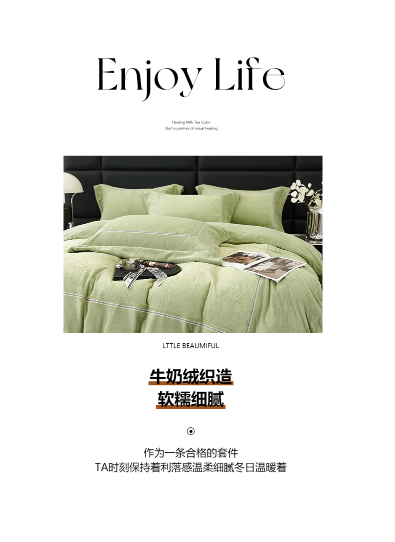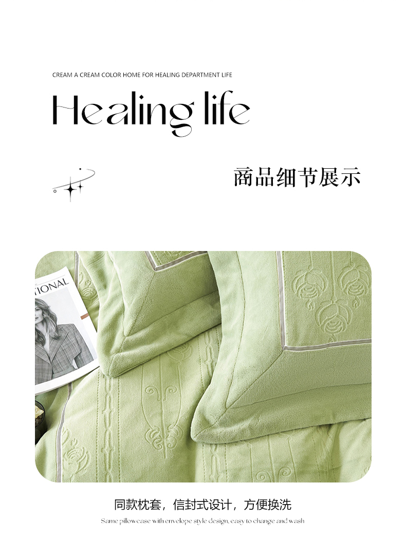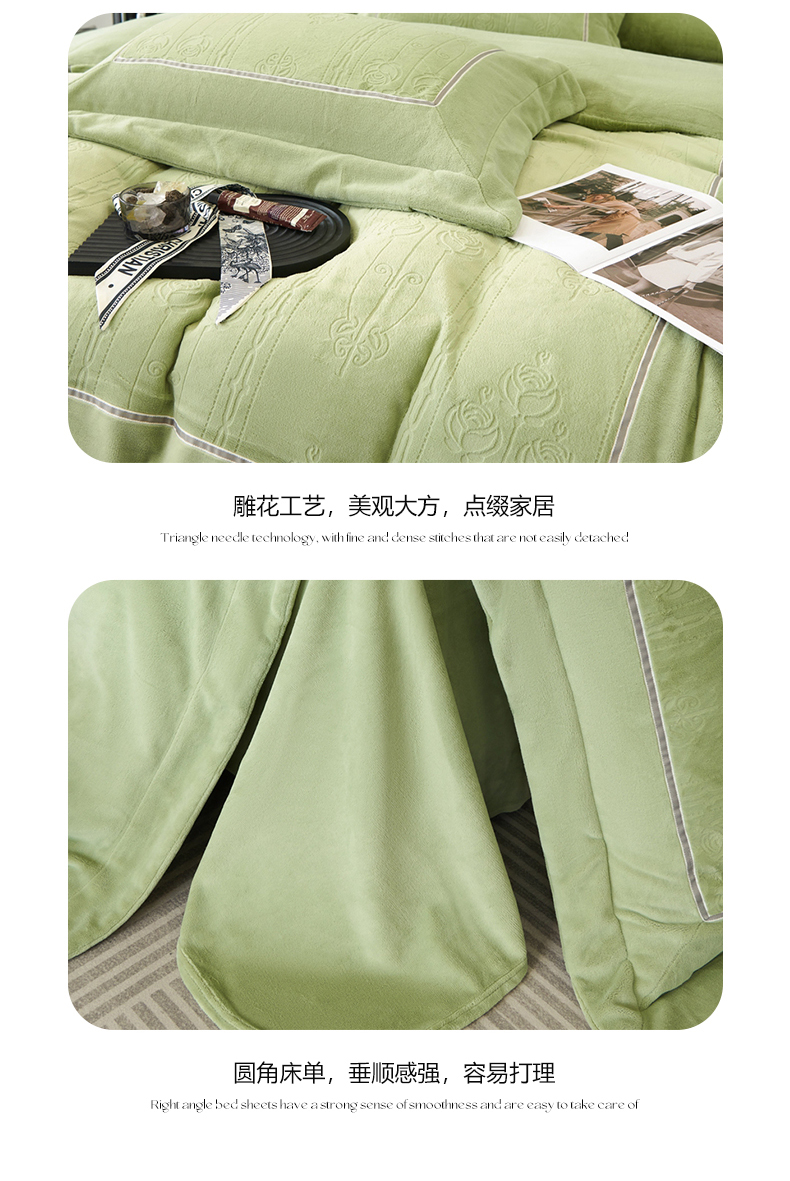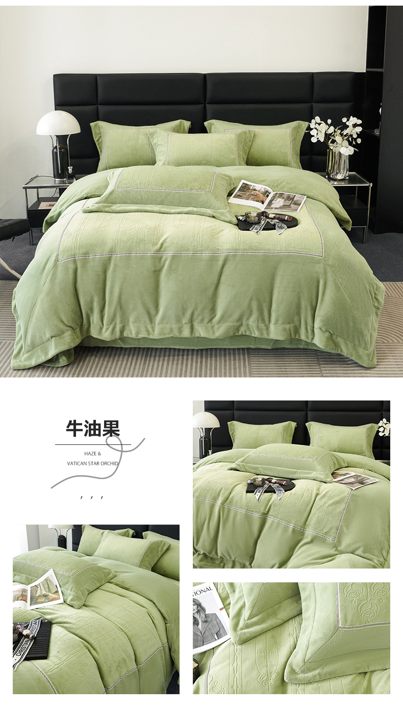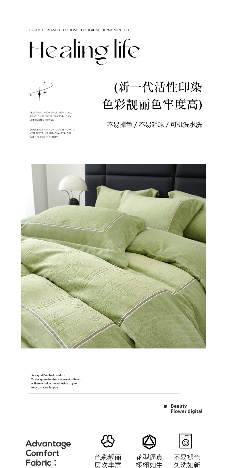 榻尚家居 2023新款秋冬暖绒Queen系列-玫瑰花园 牛油果