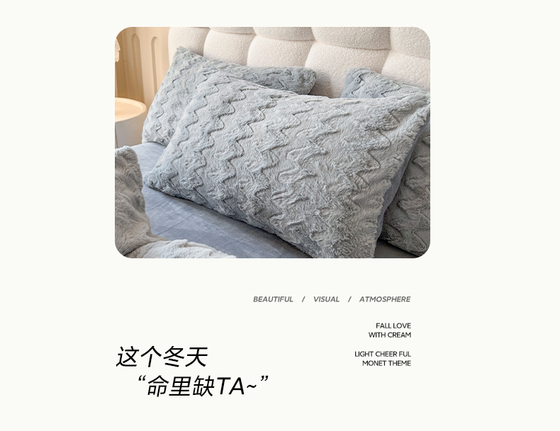 商品名称:麒豆豆 2023新款A版兔毛绒B版素色牛奶绒四件套-归简 归简-奶酪灰