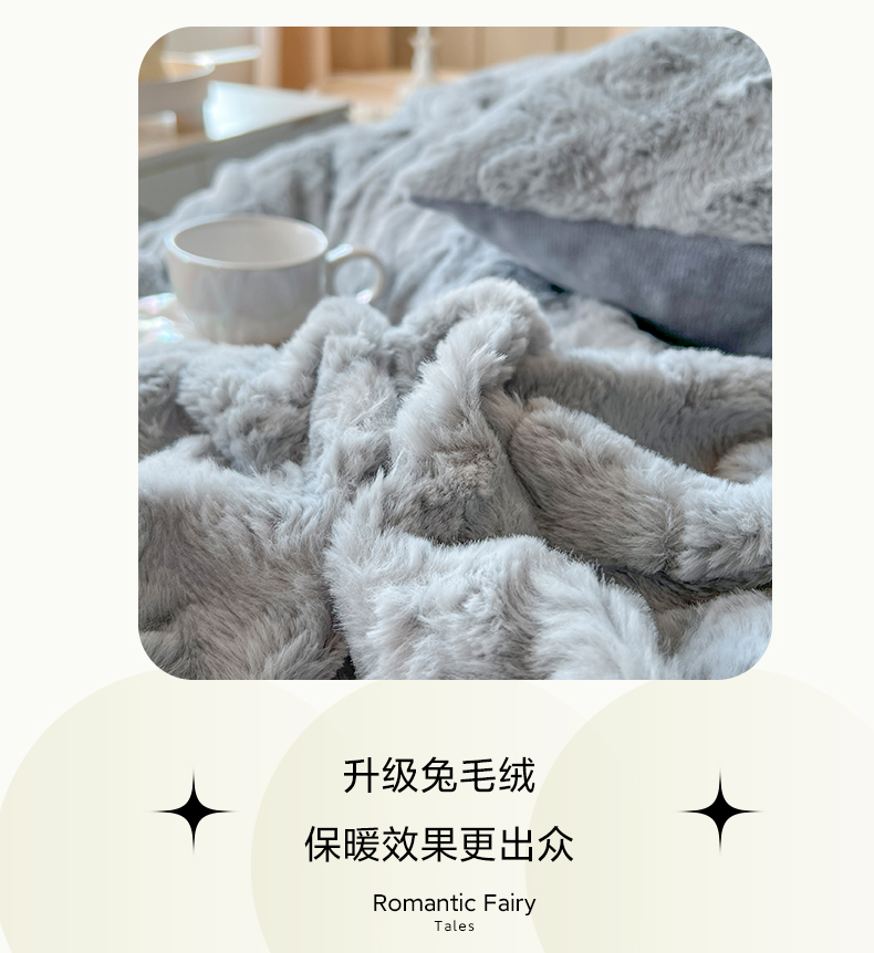 麒豆豆 2023新款A版兔毛绒B版素色牛奶绒四件套-归简 归简-奶酪灰