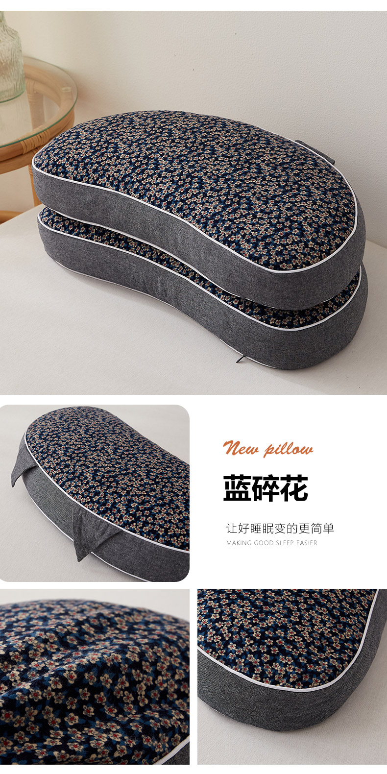 当前位置: 91家纺网 > 商品网购 > 枕头/枕芯/保健枕/颈椎枕 > 普通枕芯 > 乐可 2023新款猫耳朵荞麦枕 猫耳朵荞麦枕-蓝碎花【单只装】