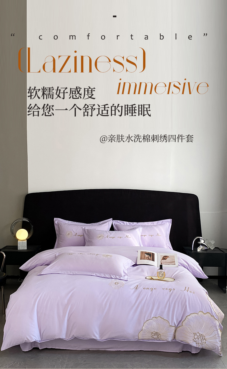 当前位置: 91家纺网 > 商品网购 > 床品套件 > 四件套 > 水洗棉四件套 > 你好美丽 2025新款水洗棉花韵刺绣四件套 花韵紫