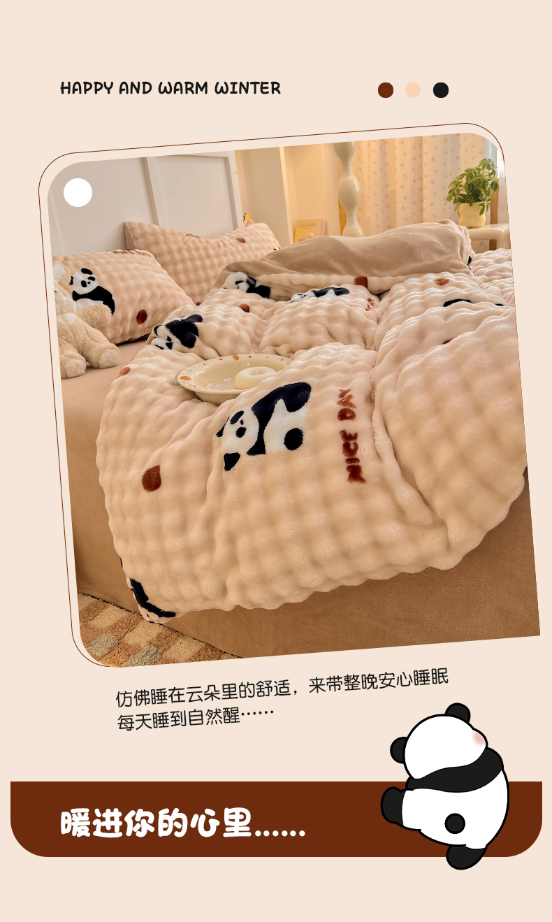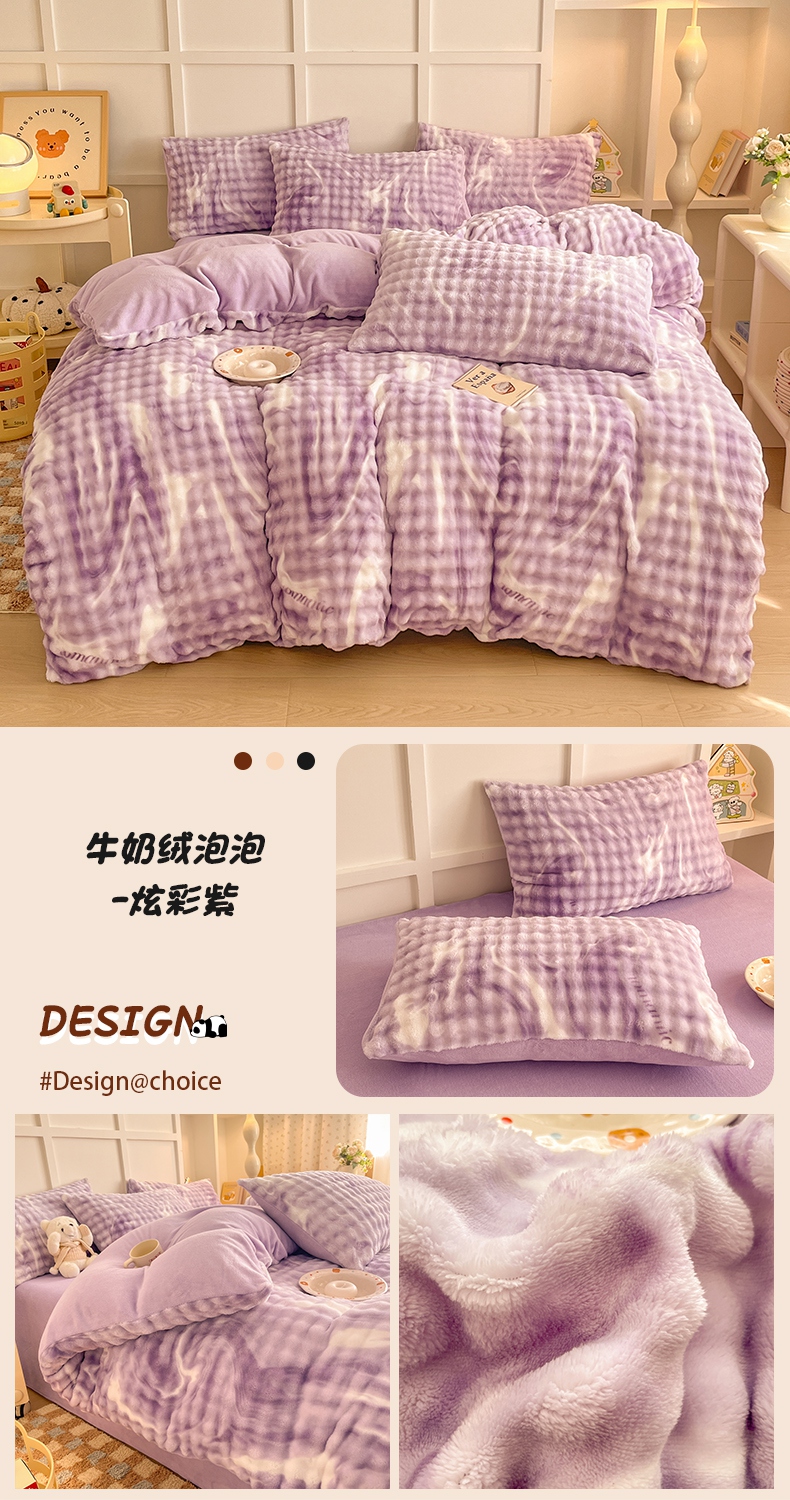 商品名称:金喜 2024新款牛奶绒印花泡泡四件套 泡泡牛奶绒-拾忆粉