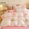 金喜 2024新款牛奶绒印花泡泡四件套 泡泡牛奶绒-拾忆粉