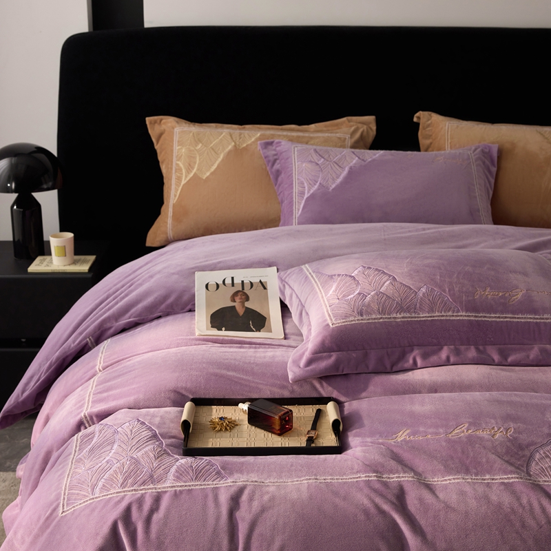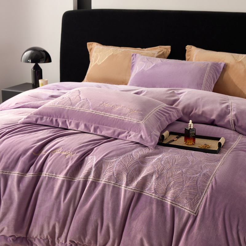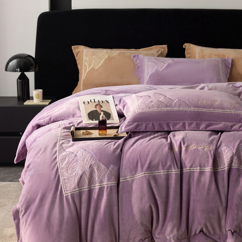 榻尚家居 2024新款绣花加厚婴肤绒四件套--秋语 秋语 紫