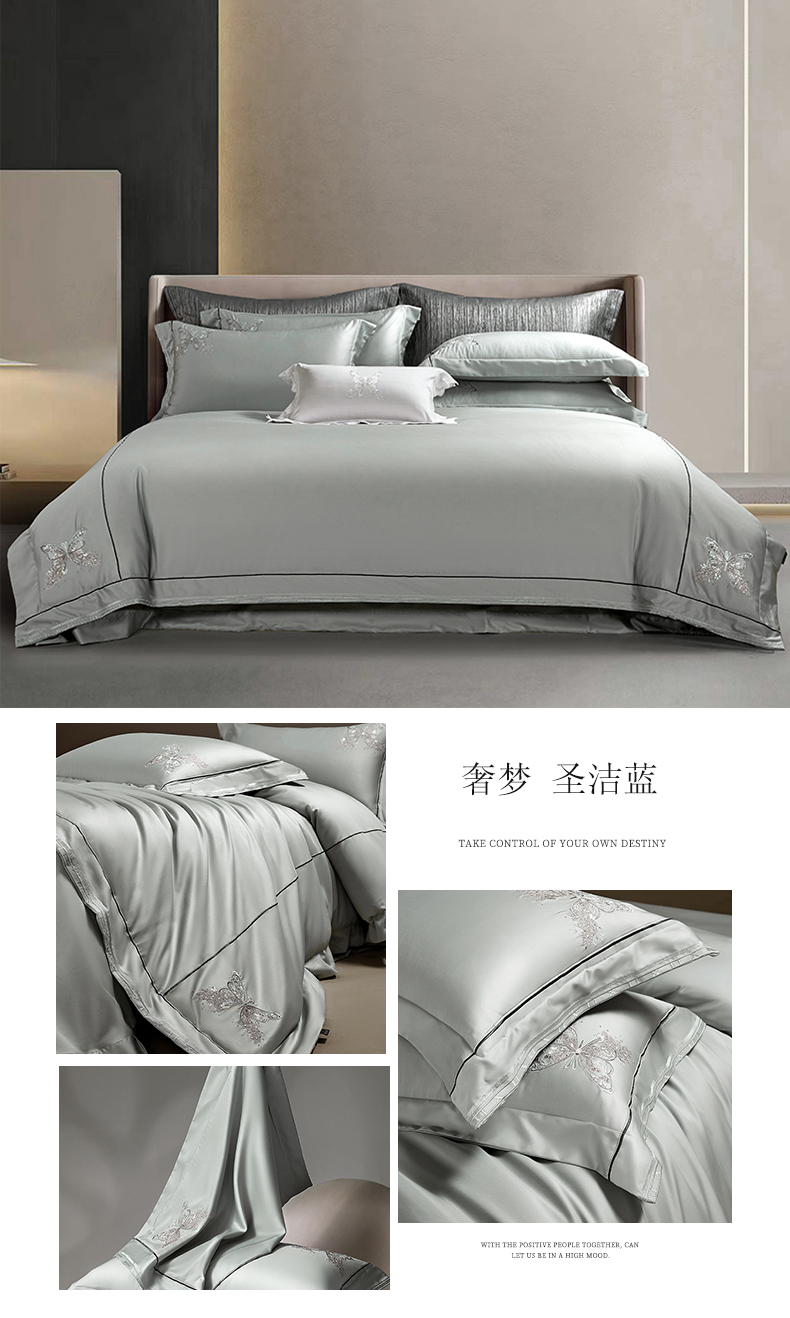 诗黛尔 2025春夏新款长绒棉刺绣奢梦系列四件套 奢梦圣洁蓝