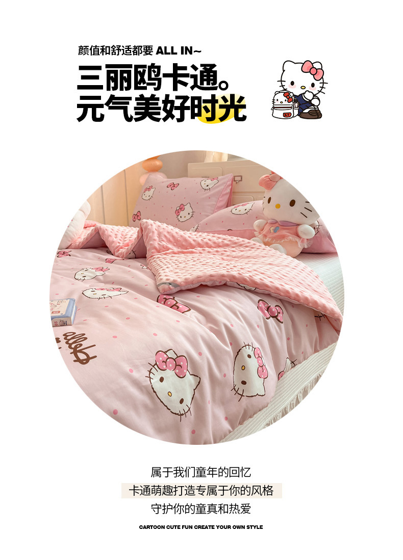 • 91家纺网 家纺一手货源 找家纺 暮思家居 2025新款正版授权三丽鸥A版纯棉B版安抚豆豆绒春秋被冬被豆豆被被子被芯系列 豆豆被-可爱凯蒂