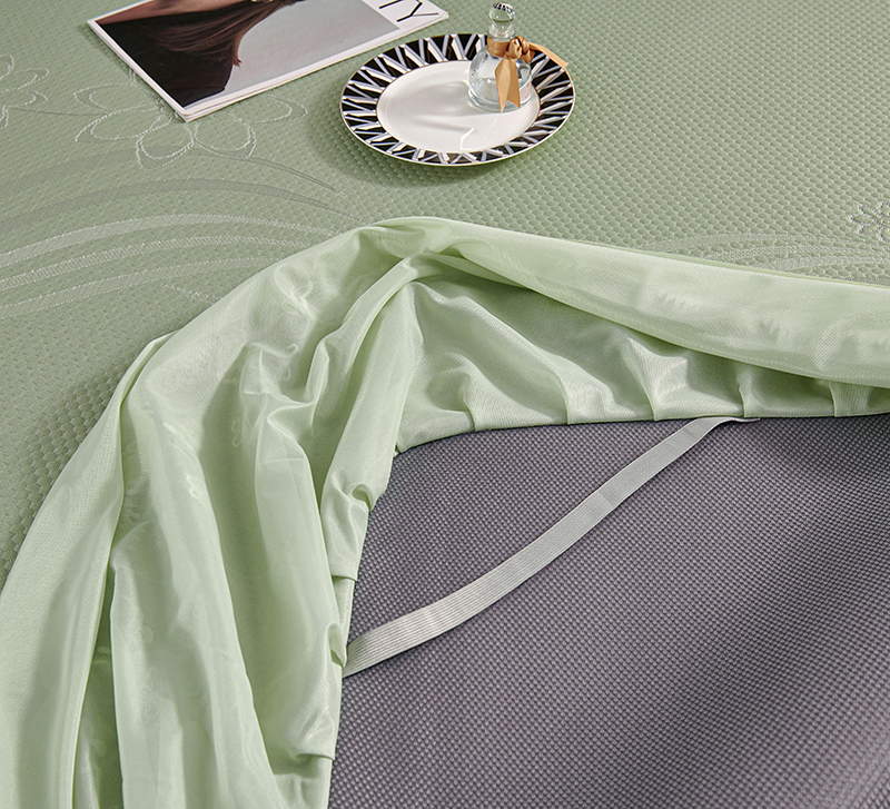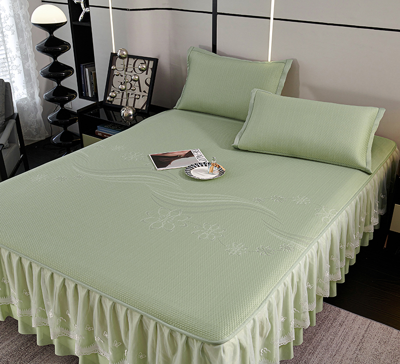 青雅席业 2025新款7A抗菌母婴级纯乙纶PE刺绣凉感丝豆豆席 床裙款 浪花-水绿