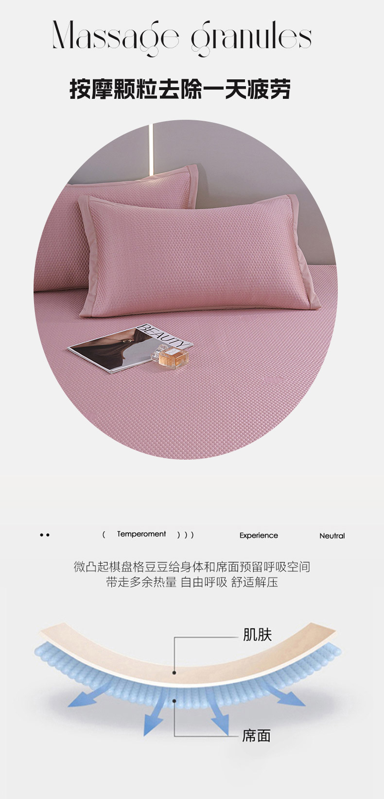(总)青雅席业 2025新款舒适亲肤凉感冰豆豆网纱花边凉席,粉色,灰色,咖色,蓝色,绿色