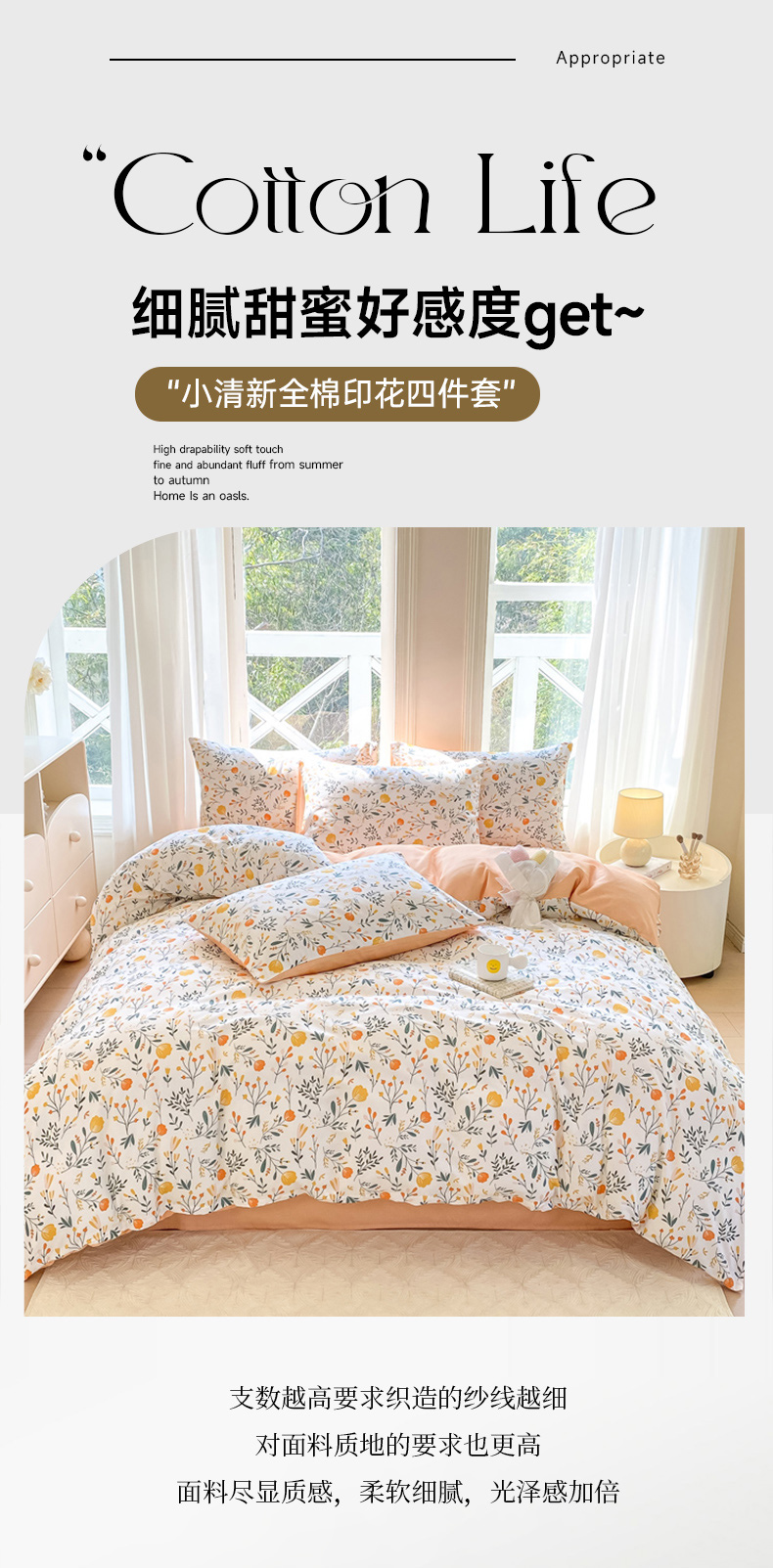 商品名称:念家居 2025新款直播爆款三件套印花小清新13070全棉四件套 休闲时光